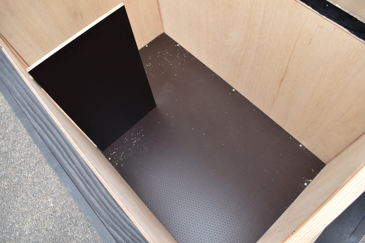 - The doghouse has black plastic feet, making it easier to move, and the hutch is better protected against moisture