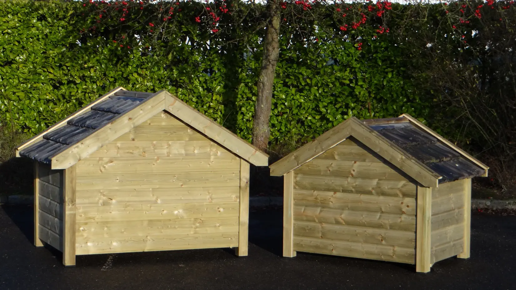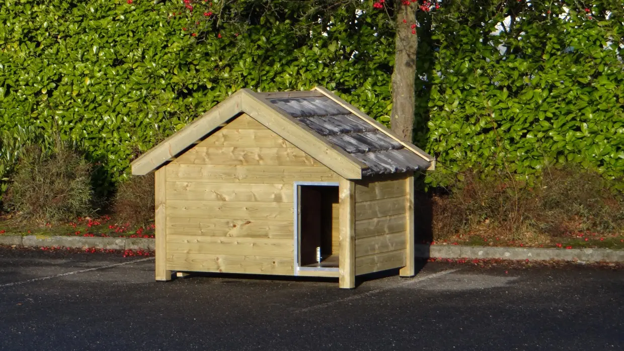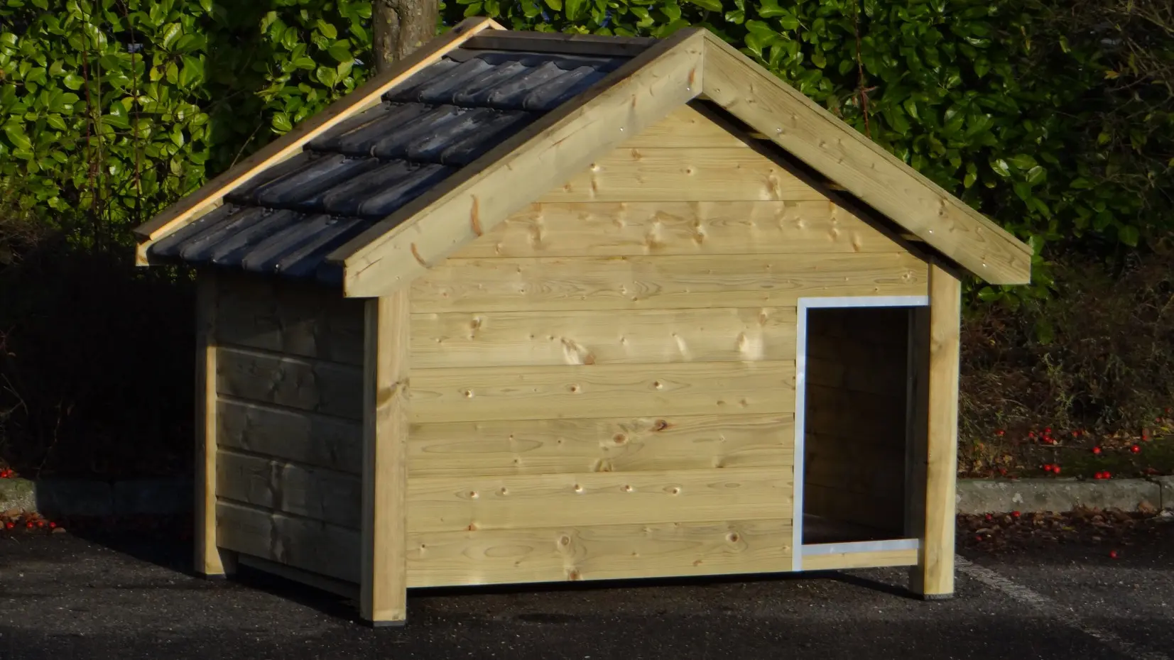 - Doghouse of high pressure treated pinewood in combination with betonplex