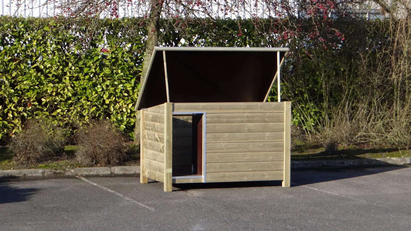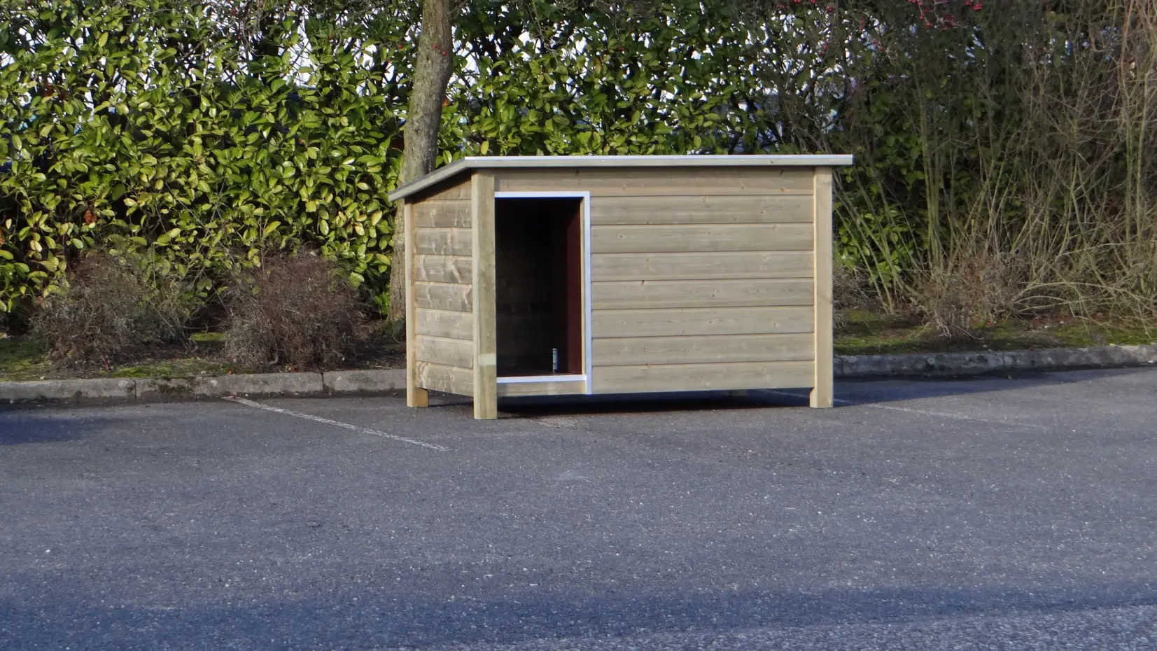 - Does not bark but bites: kennel with closed roof