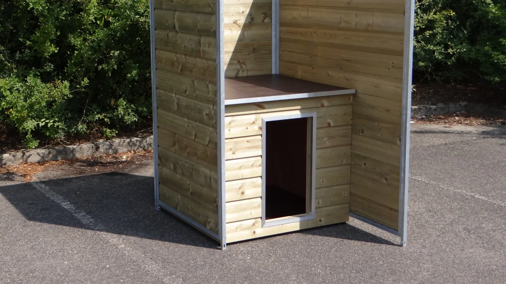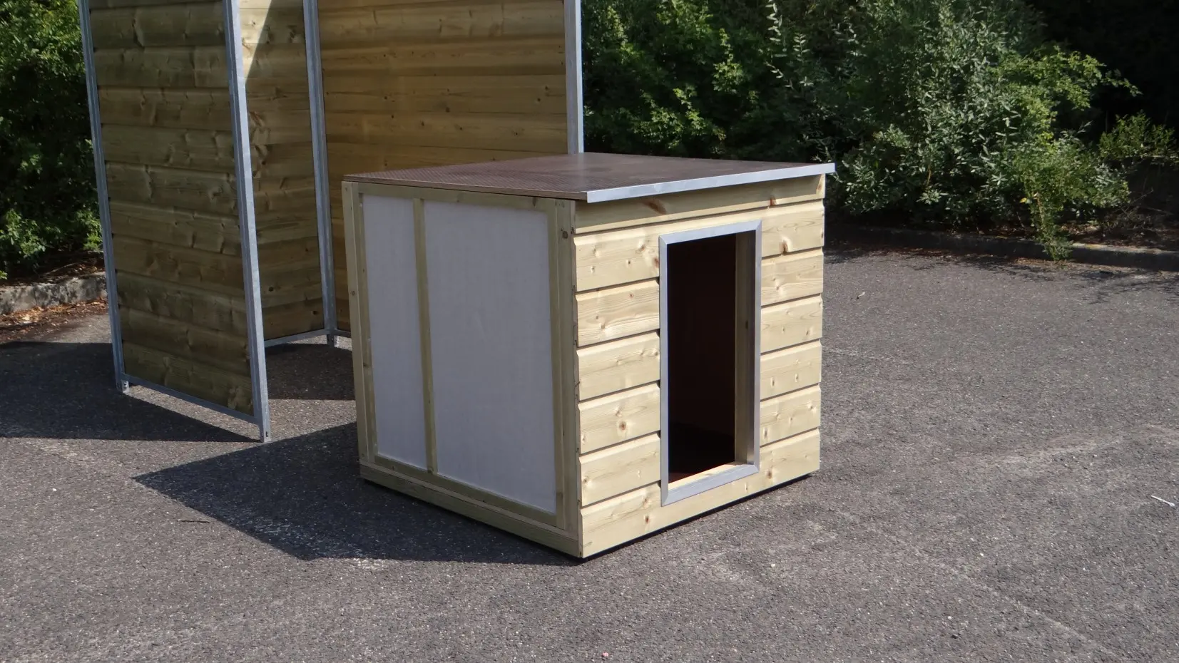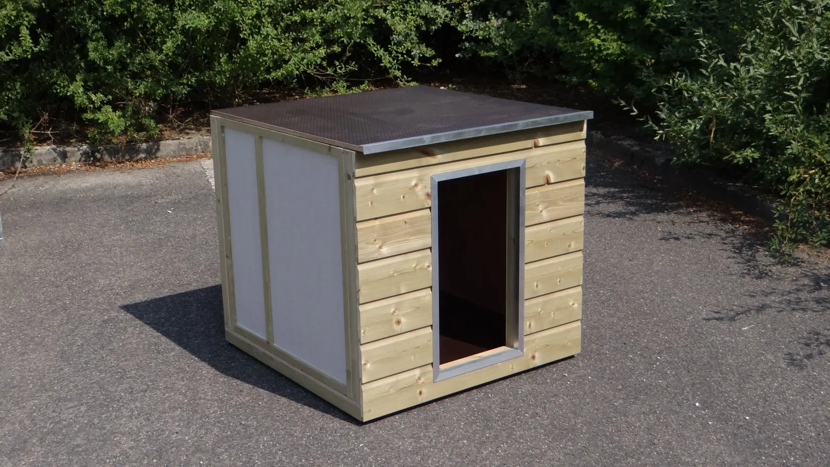 - Doghouse of high pressure treated pinewood in combination with betonplex