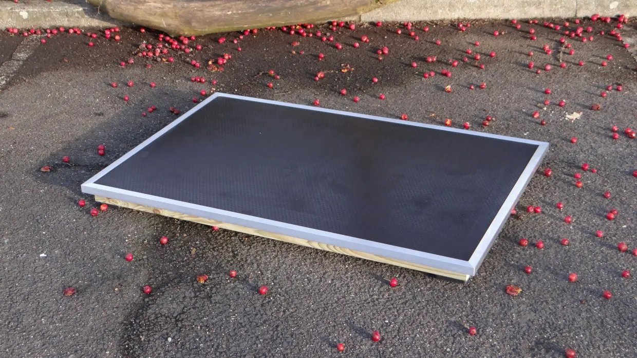 The floor is made of 15 mm thick concrete plywood with an anti-slip coating and has an aluminum edge all around to prevent biting.