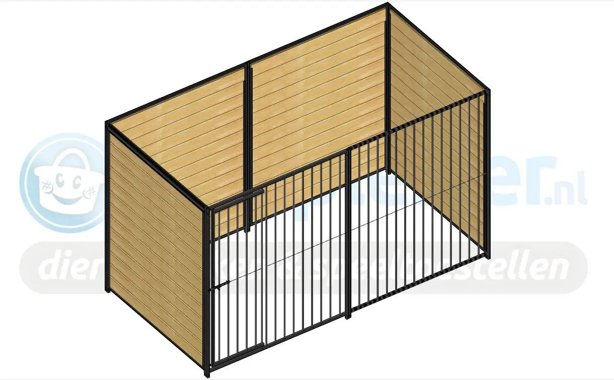 This dog kennel is a great dog kennel for your dog. The kennel of 1,5x3m has a roof, wooden sidewalls and a door. Usually, we can deliver this kennel by our own stock! In the dog kennel a particular strong doghouse of Douglas wood is placed. So, this dog kennel is a complete solution for your dog!