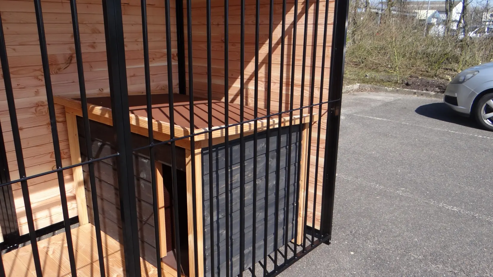 - The kennel door is standard on the left side, opens inwards and has the option of a padlock