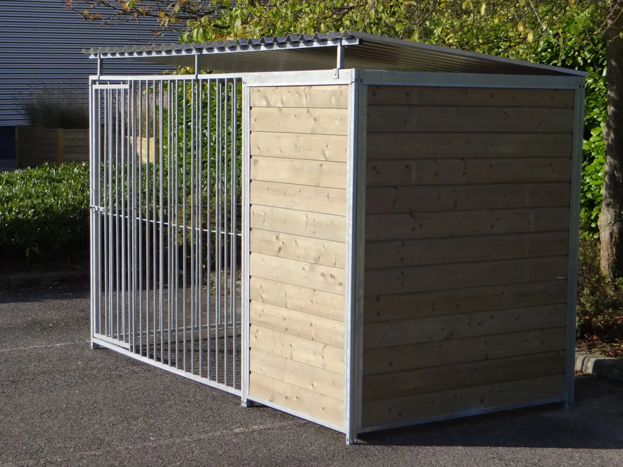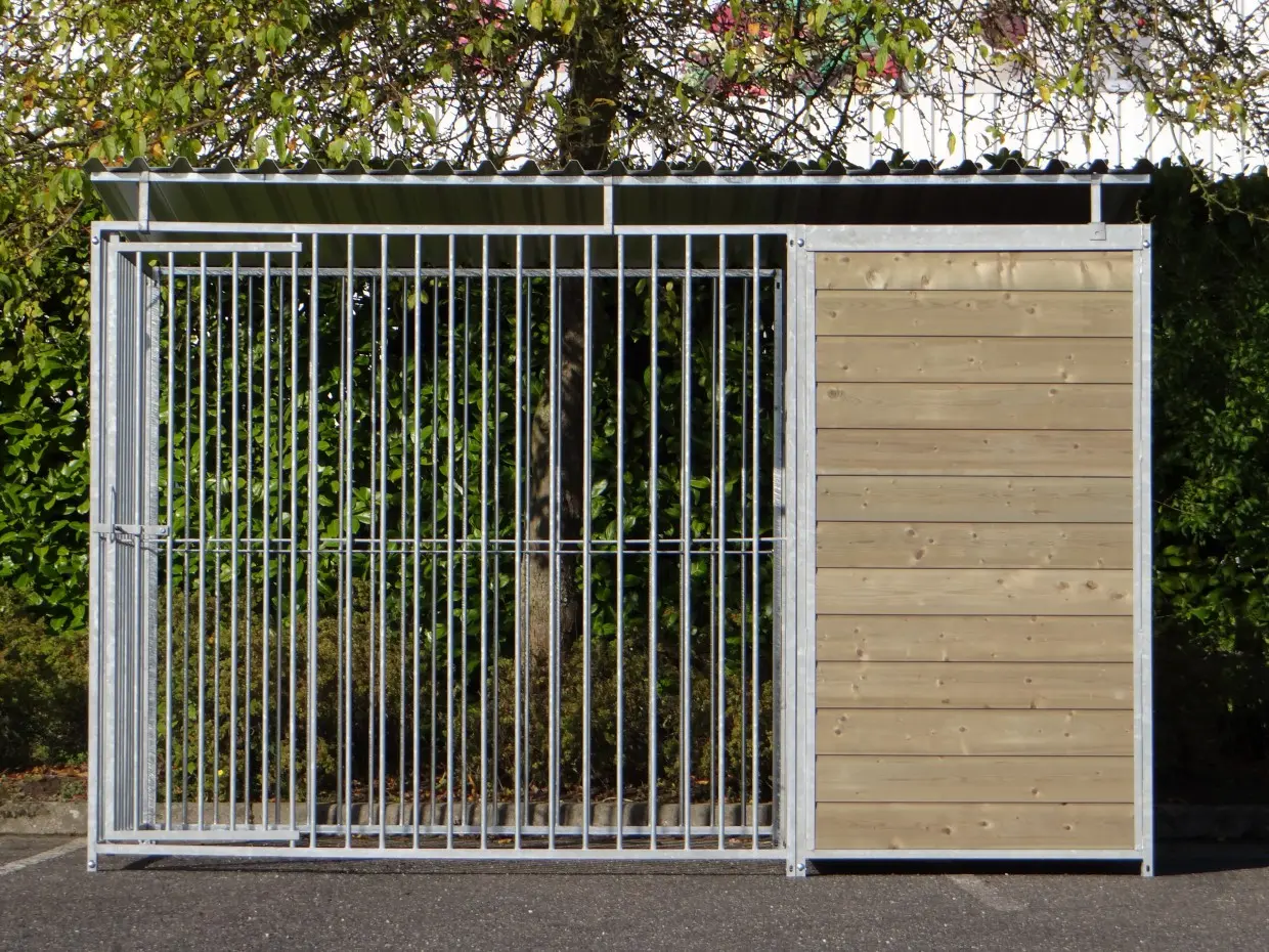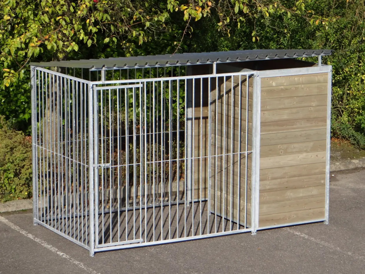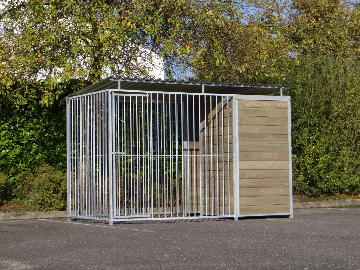 Deze stevige gegalvaniseerde hondenkennel is een optimaal buitenverblijf voor uw hond. Voorzien van een dak en 3 dichte houten wanden. De hondenkennel is 3 x 1.5 meter en binnenin voorzien van een fijn tochtschot voor een beschutte plaats voor uw hond. Deze kennel is normaal gesproken direct uit voorraad leverbaar...!