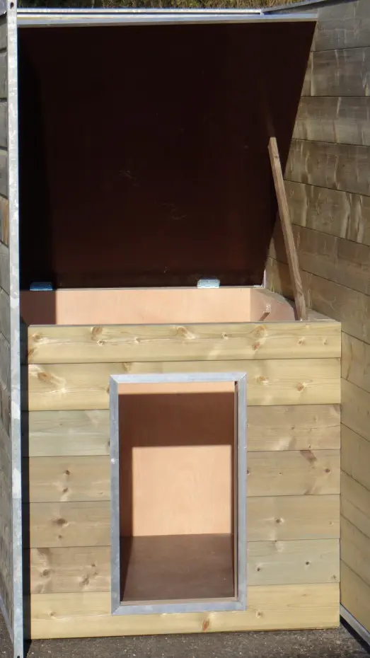 - The kennel door is standard on the left side, opens inwards and has the option of a padlock