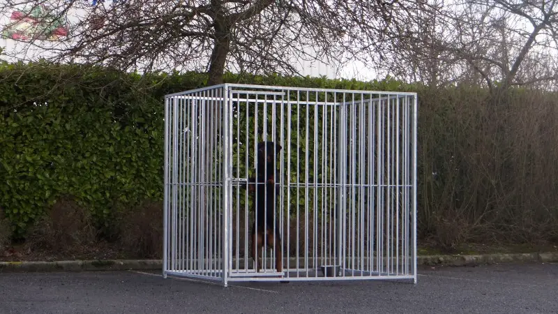 - The kennel door is standard on the left side, opens inwards and has the option of a padlock