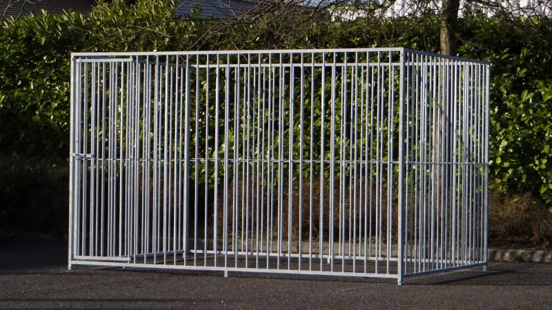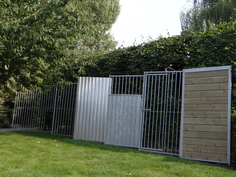 The dog kennel FLINQ of 3x2m is a nice outdoor space for your dog! The kennel exists of a few galvanised panels.