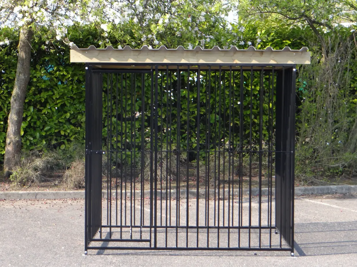 - The kennel door is standard on the left side, opens inwards and has the option of a padlock