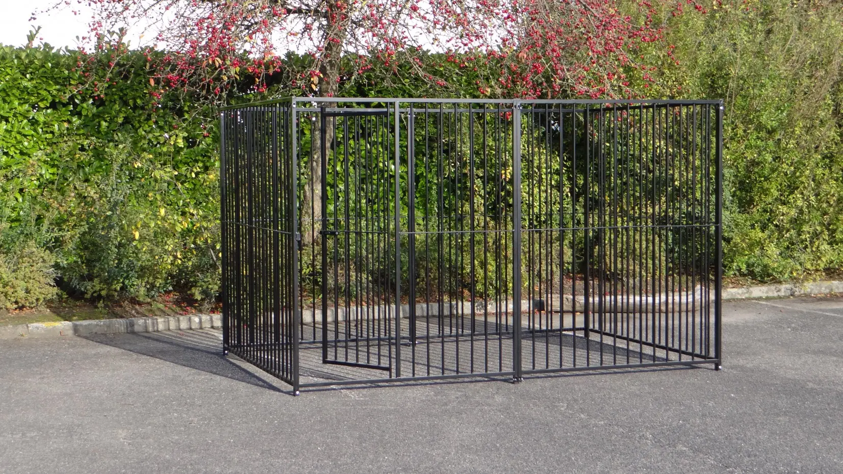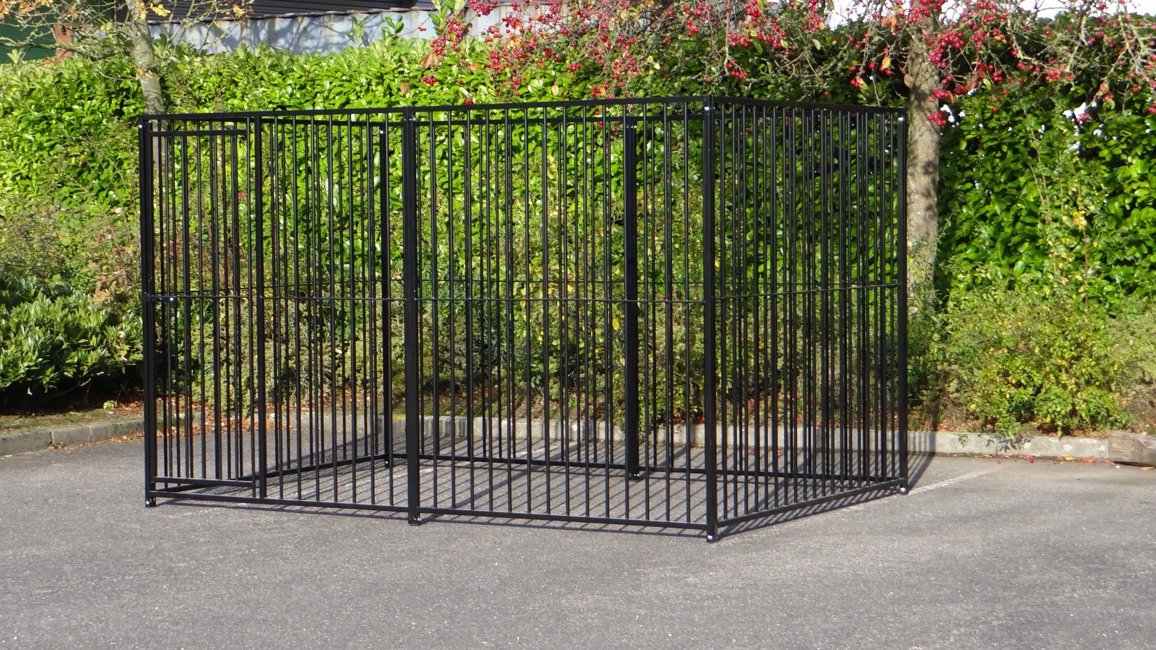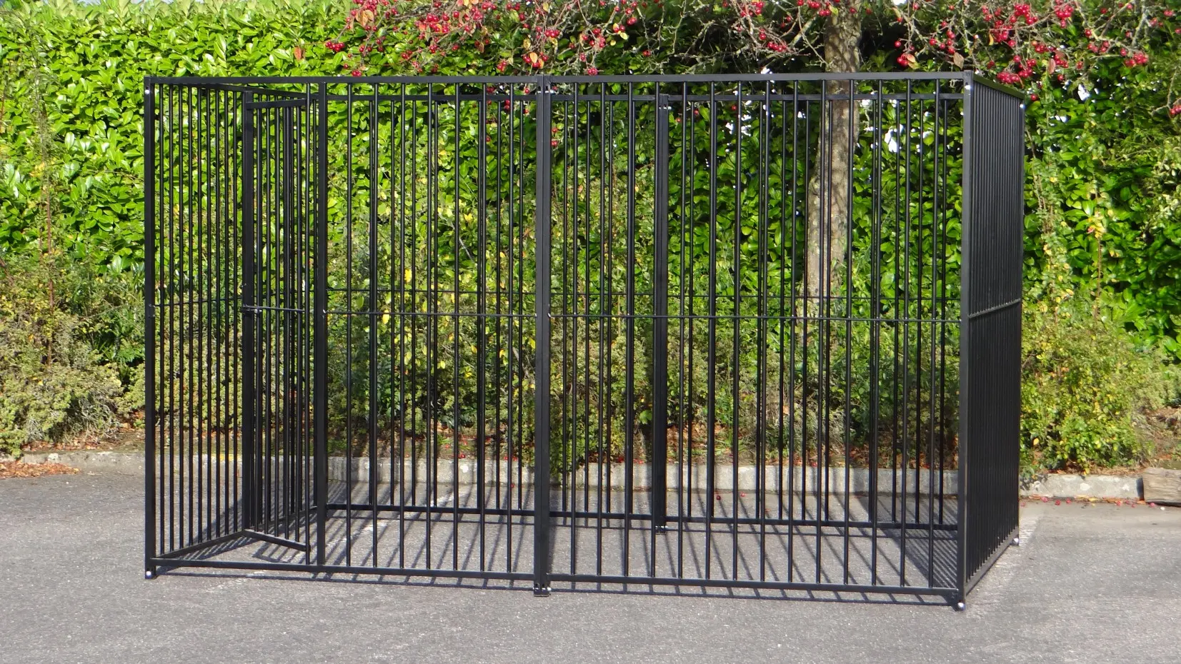 The black dog kennel of 3x2m is a beautiful outdoor place for your dog! The kennel exists of 4 panels of 1,5m and 2 panels of 2m. The kennel will be deliverd with fixing material.