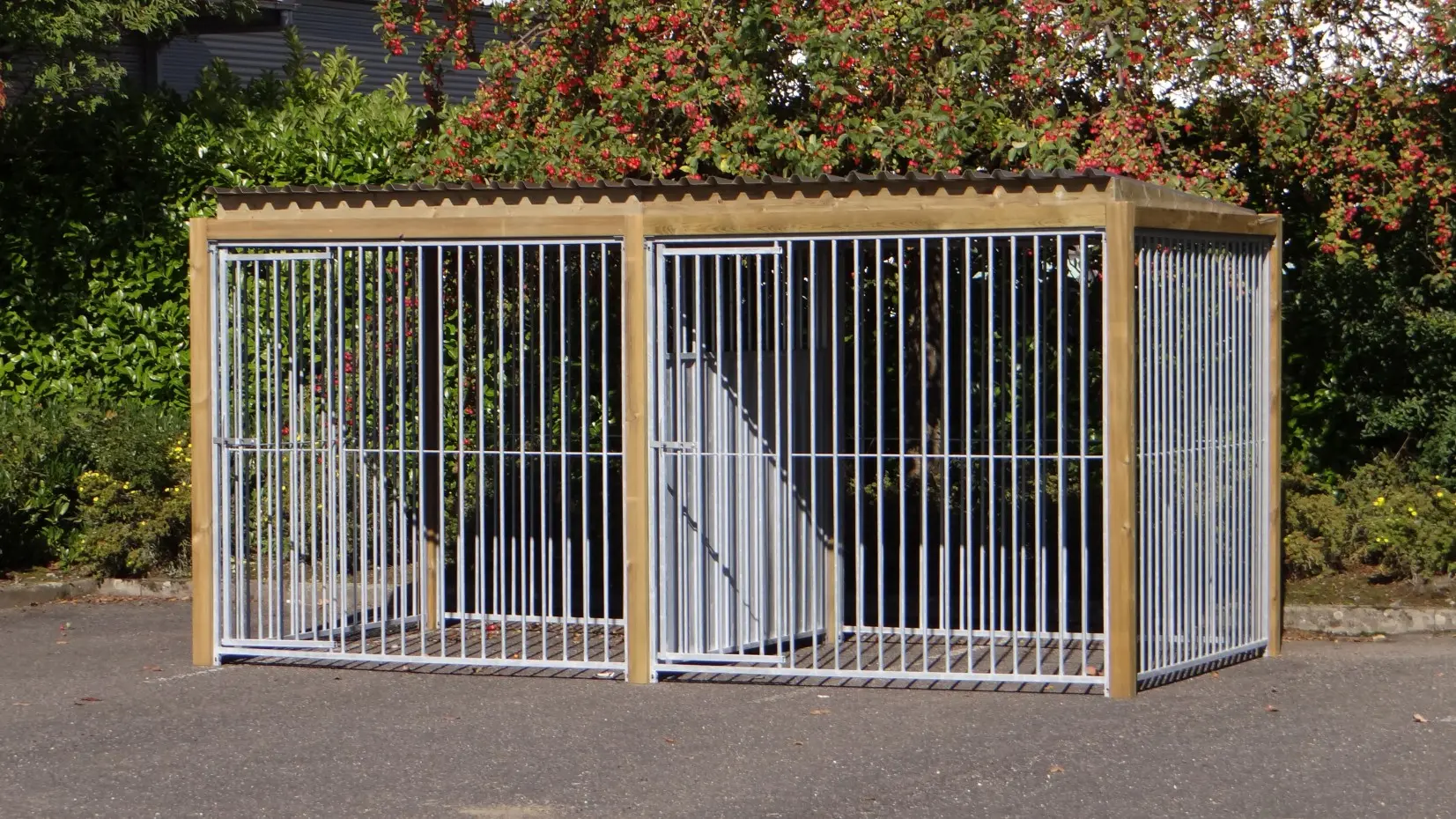 The double Flinq kennel with wooden frame is very strong and practical. The wooden frame around the panels gives a beautiful and robust look. The kennel measures 427 x 218 cm, with each run offering 4 m² of space. This makes it ideal for keeping 2 dogs separately. You can also choose to add a sleeping house to each run. The metal parts are well galvanized against rust, and the roof is made of aluminum with a sound-dampening profile. The impregnated beams have a long lifespan and require no maintenance. A clear assembly manual is included.