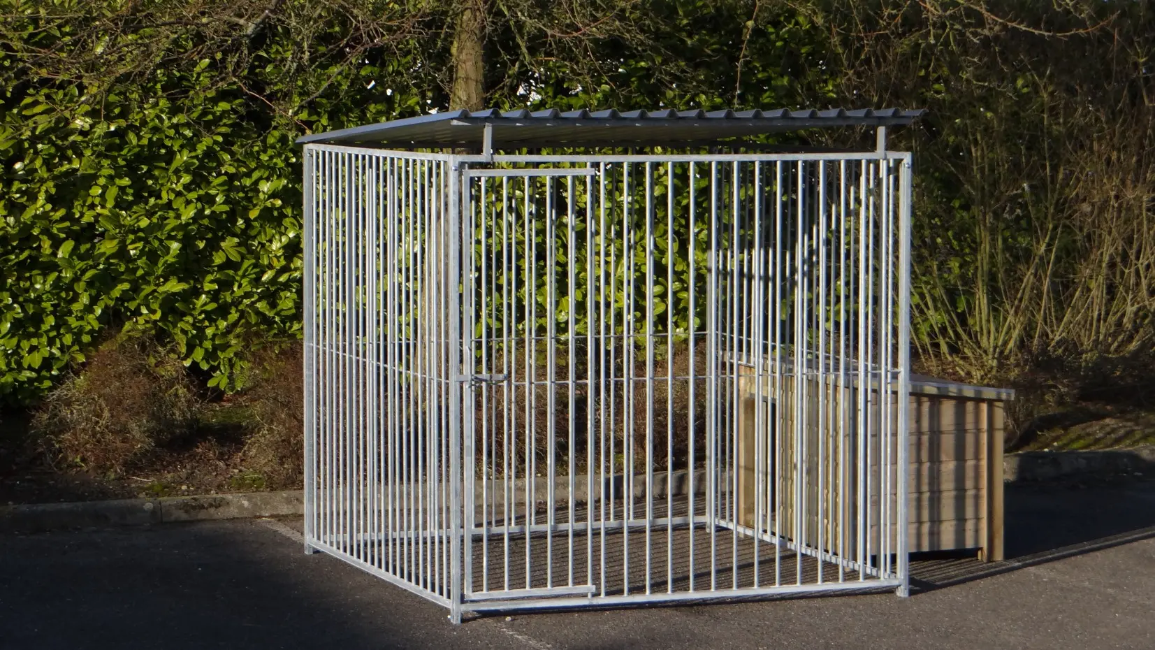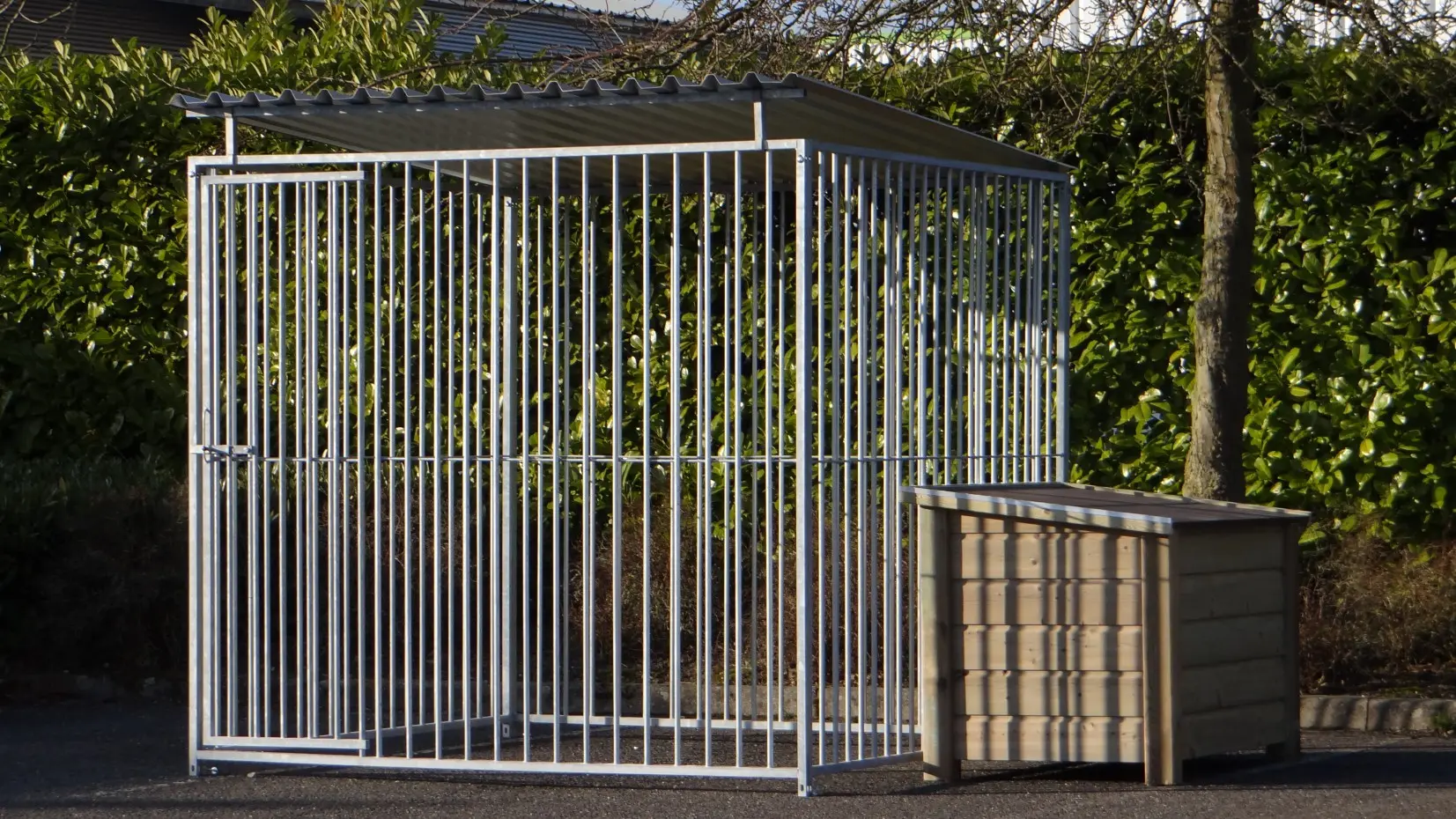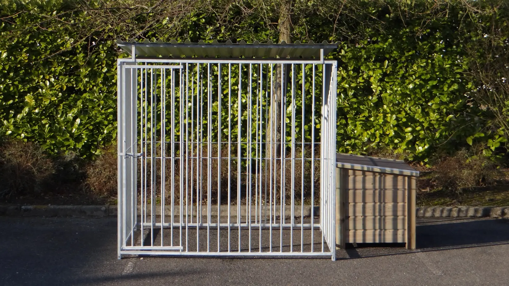 - The kennel door is standard on the left side, opens inwards and has the option of a padlock