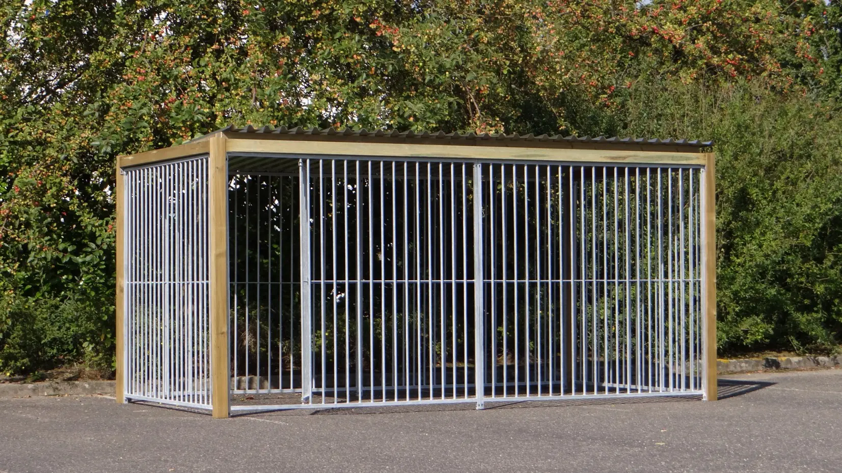 - * The kennel is equipped with a luxurious roof system with overhang at the front and at the sides.