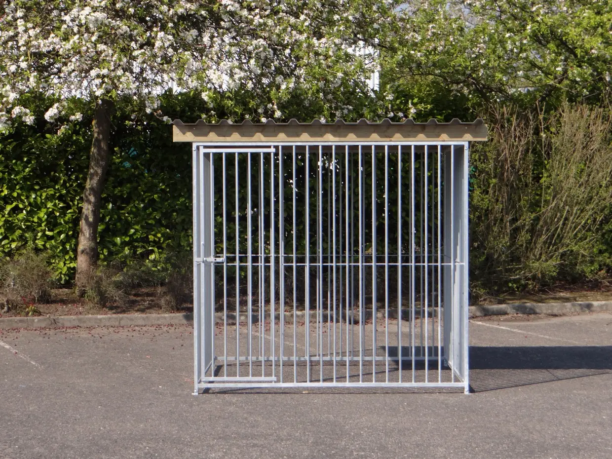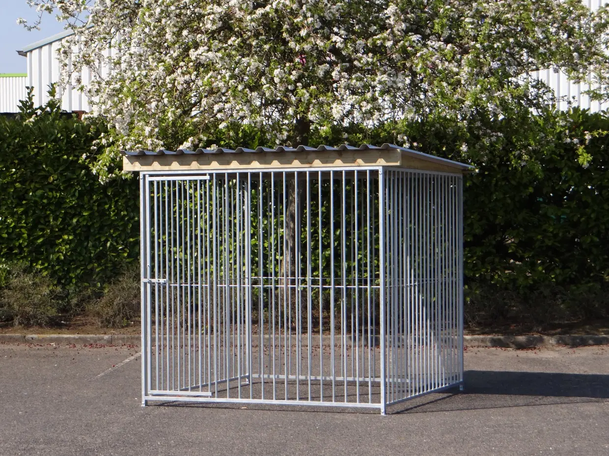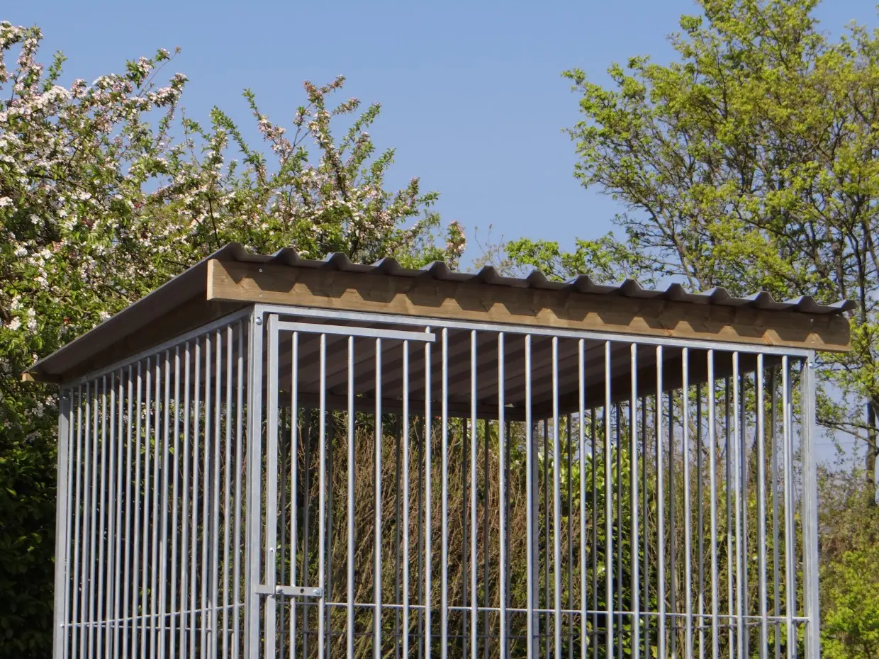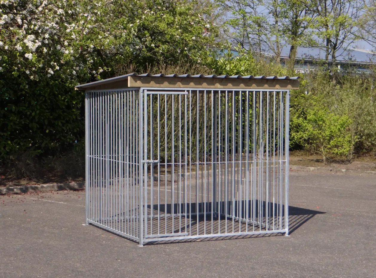 The galvanized dog kennel of 2x2m with roof Extra is a nice outdoor space for your dog! The kennel exists of 4 panels of 2m, a roof and fixing materials.