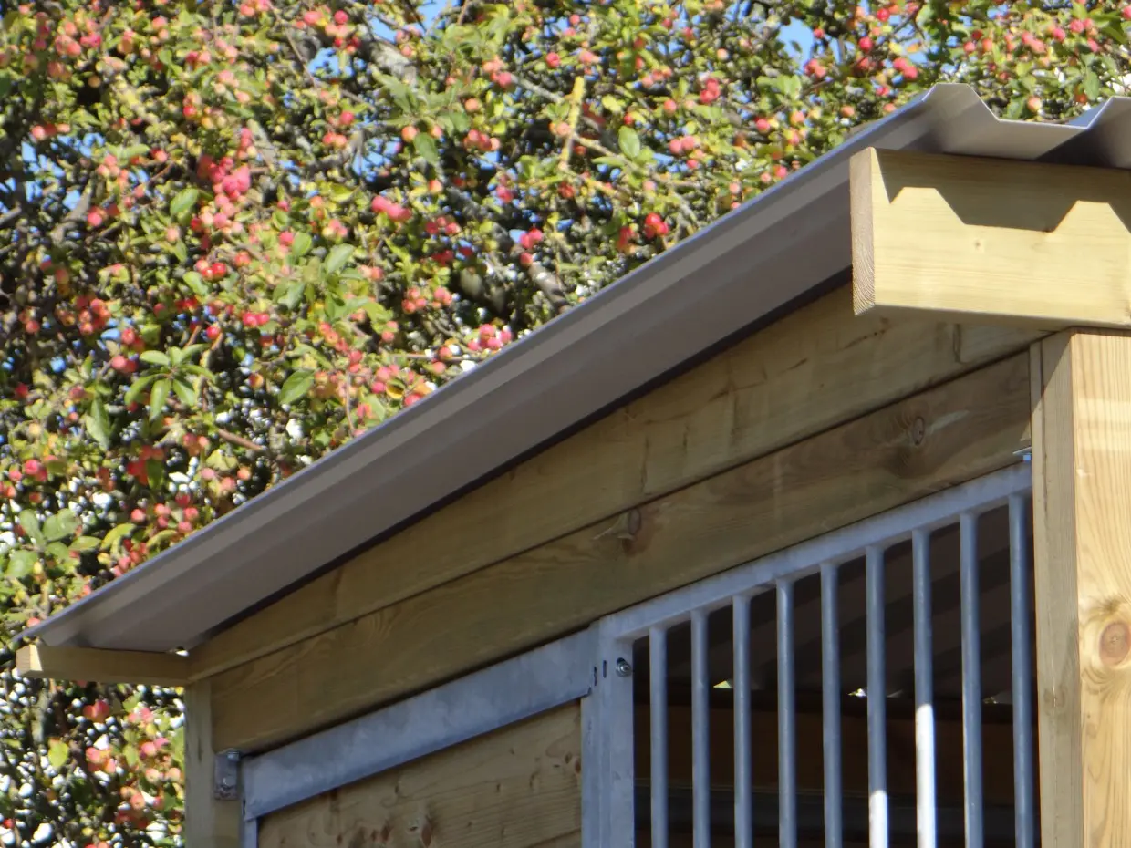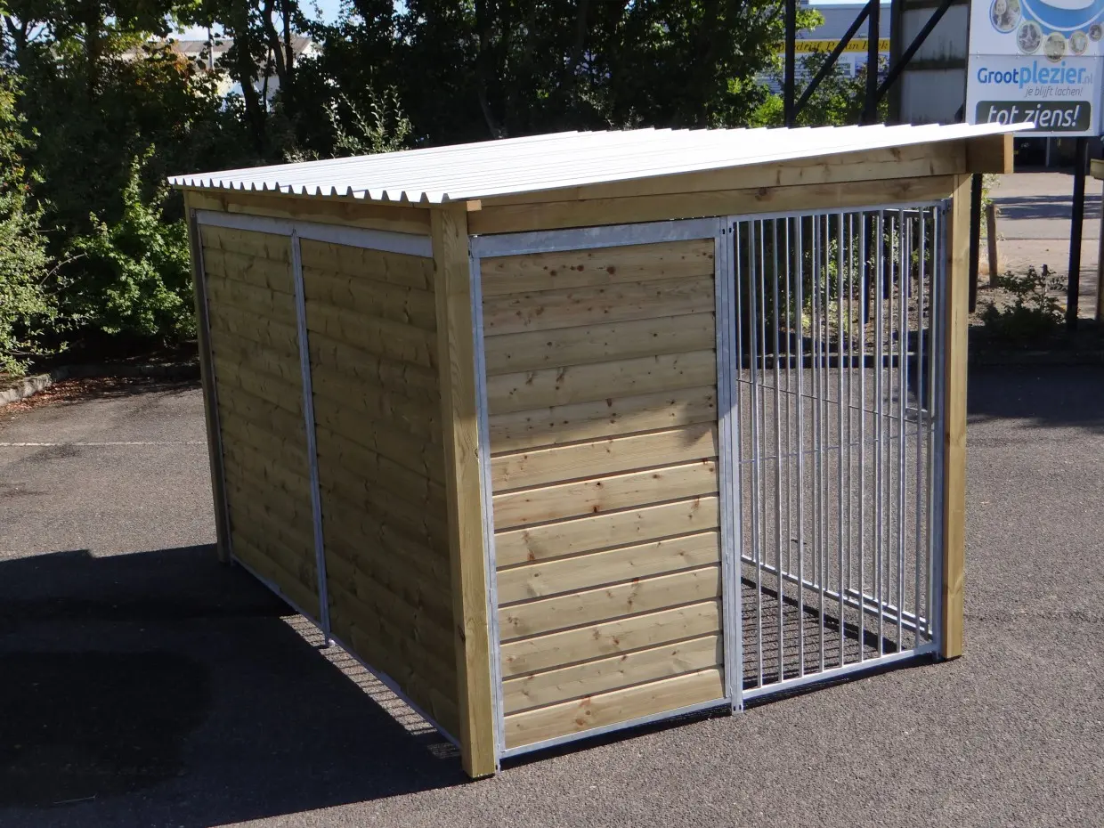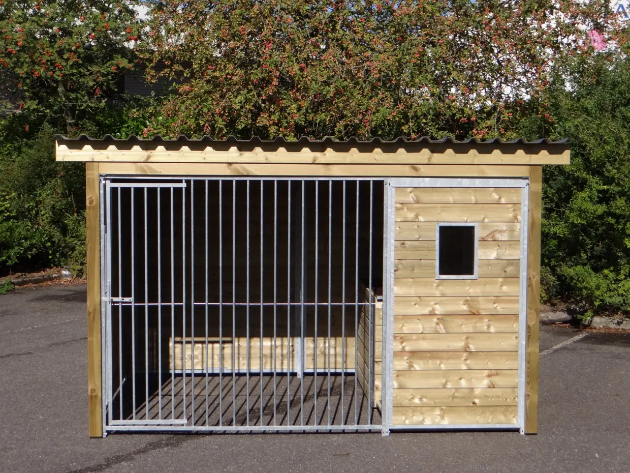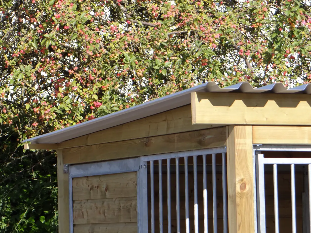 - The wooden walls provide protection against wind, rain and sun. This creates a better climate in the kennel, throughout the year.