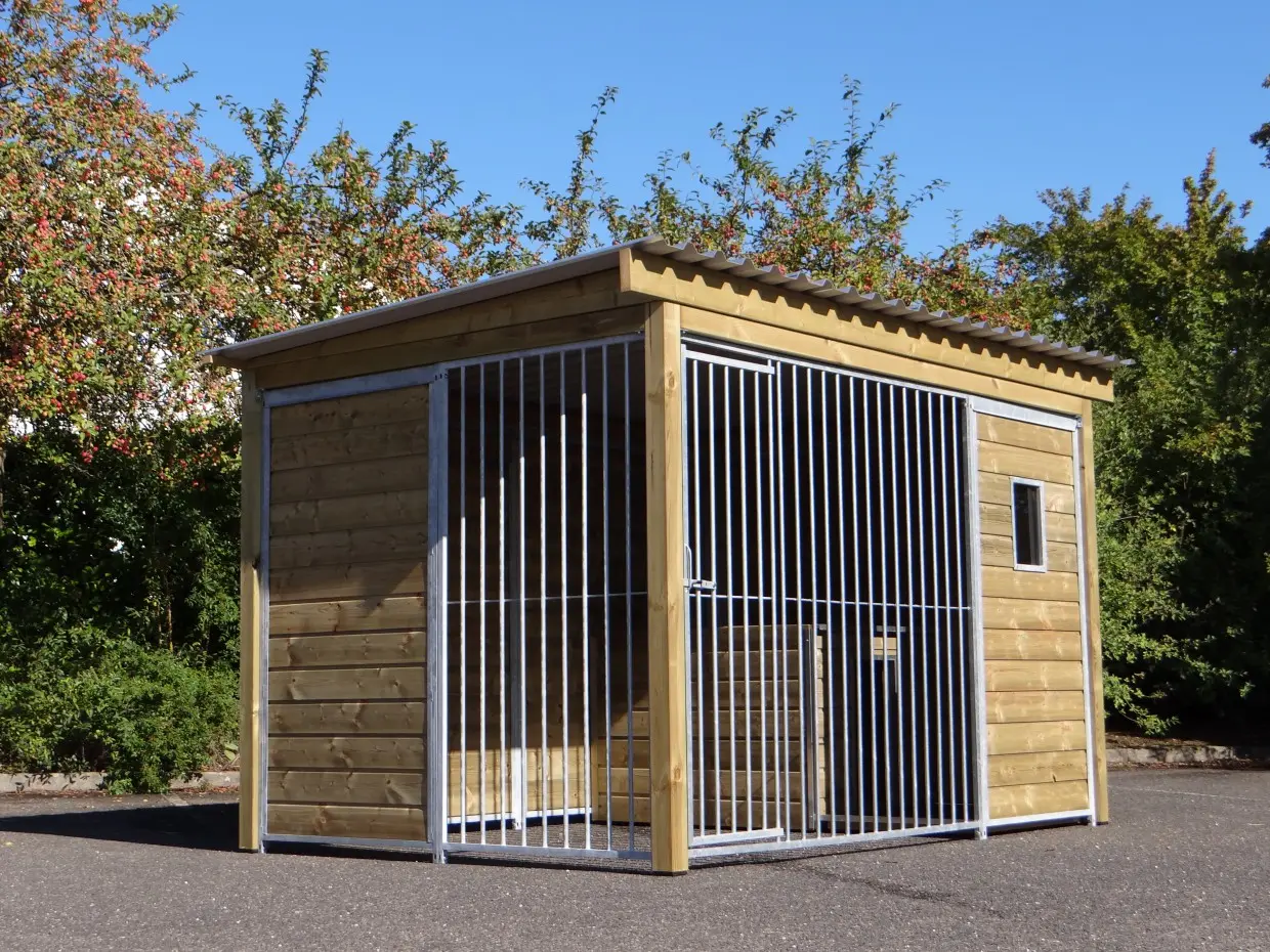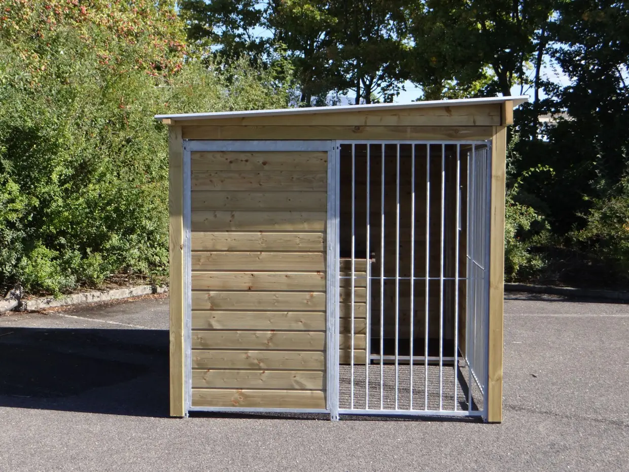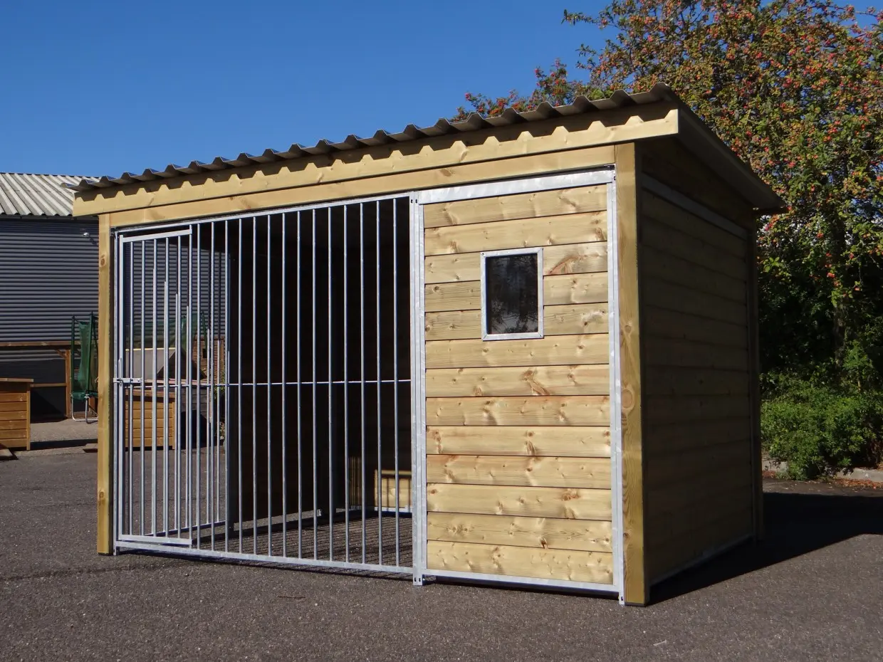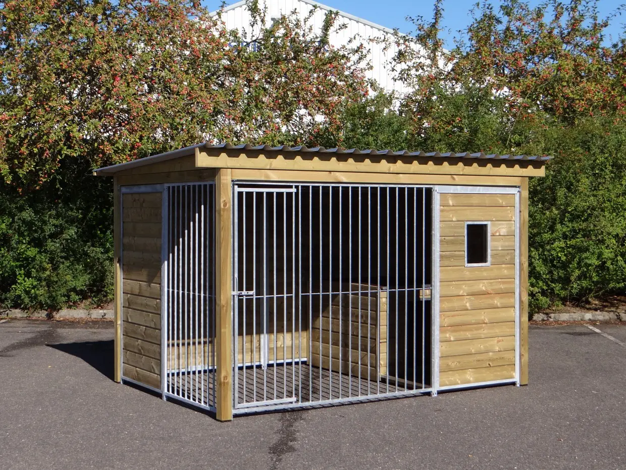 - The wooden walls provide protection against wind, rain and sun. This creates a better climate in the kennel, throughout the year.