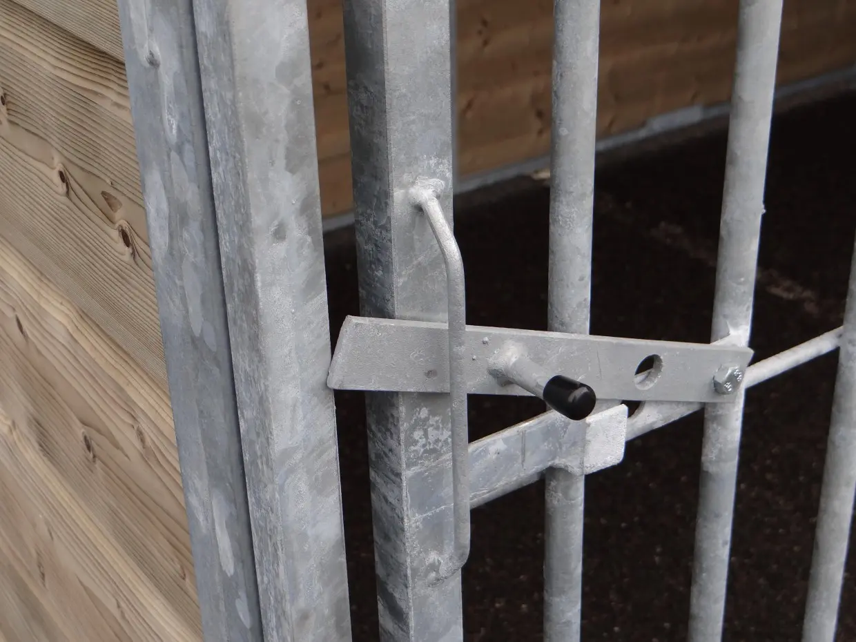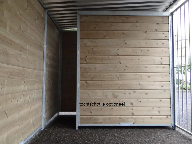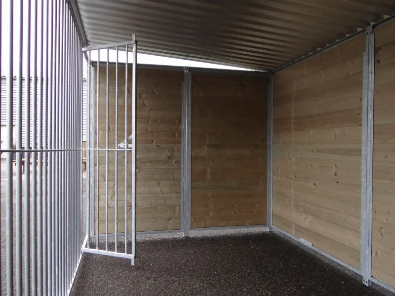 - The kennel door is standard on the left side, opens inwards and has the option of a padlock