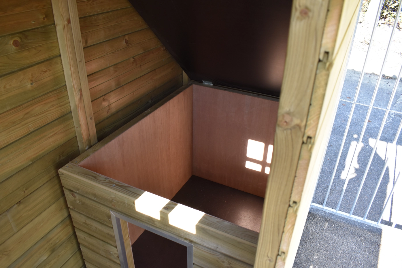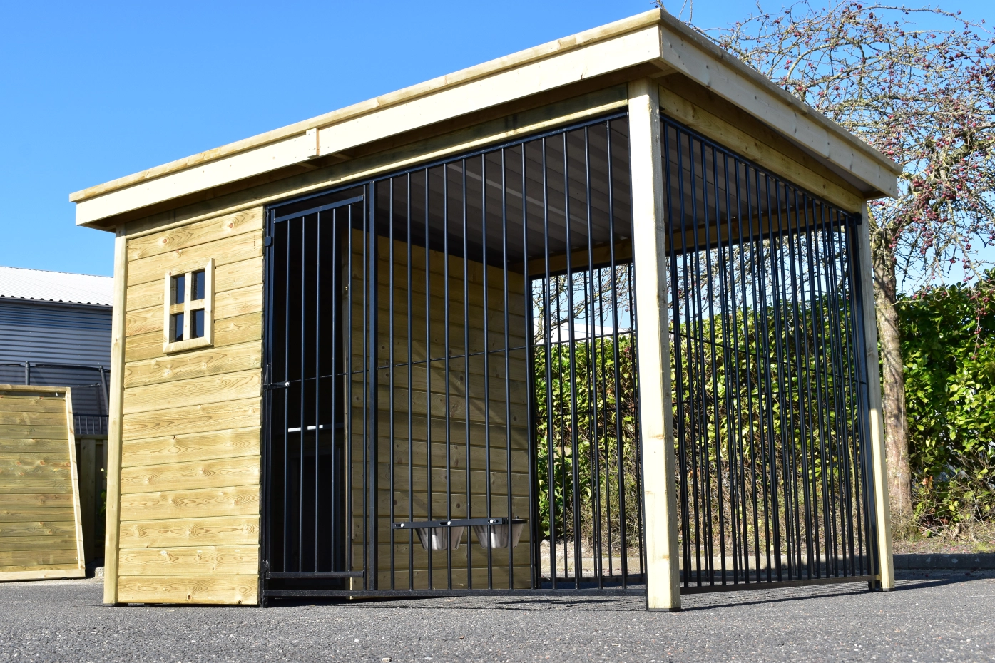 - The kennel door is standard on the left side, opens inwards and has the option of a padlock