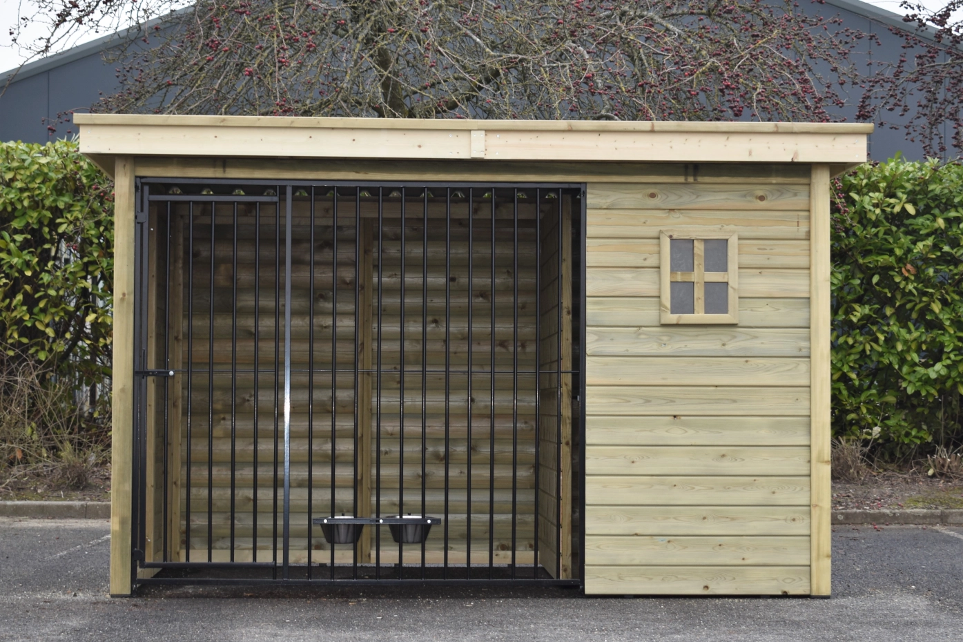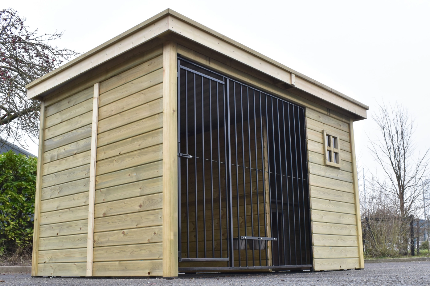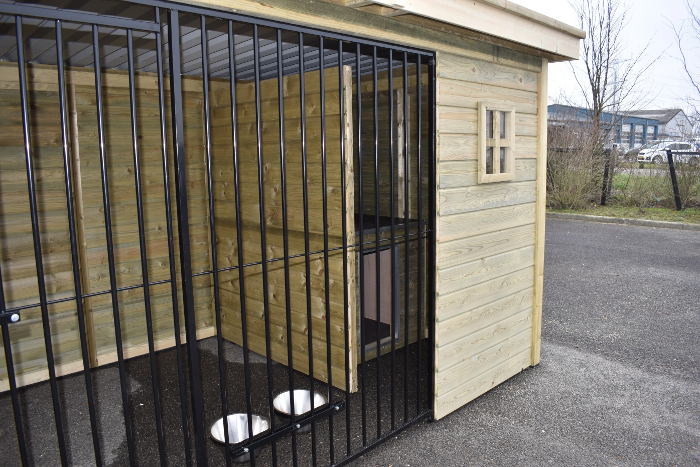 - The wooden walls provide protection against wind, rain and sun. This creates a better climate in the kennel, throughout the year.