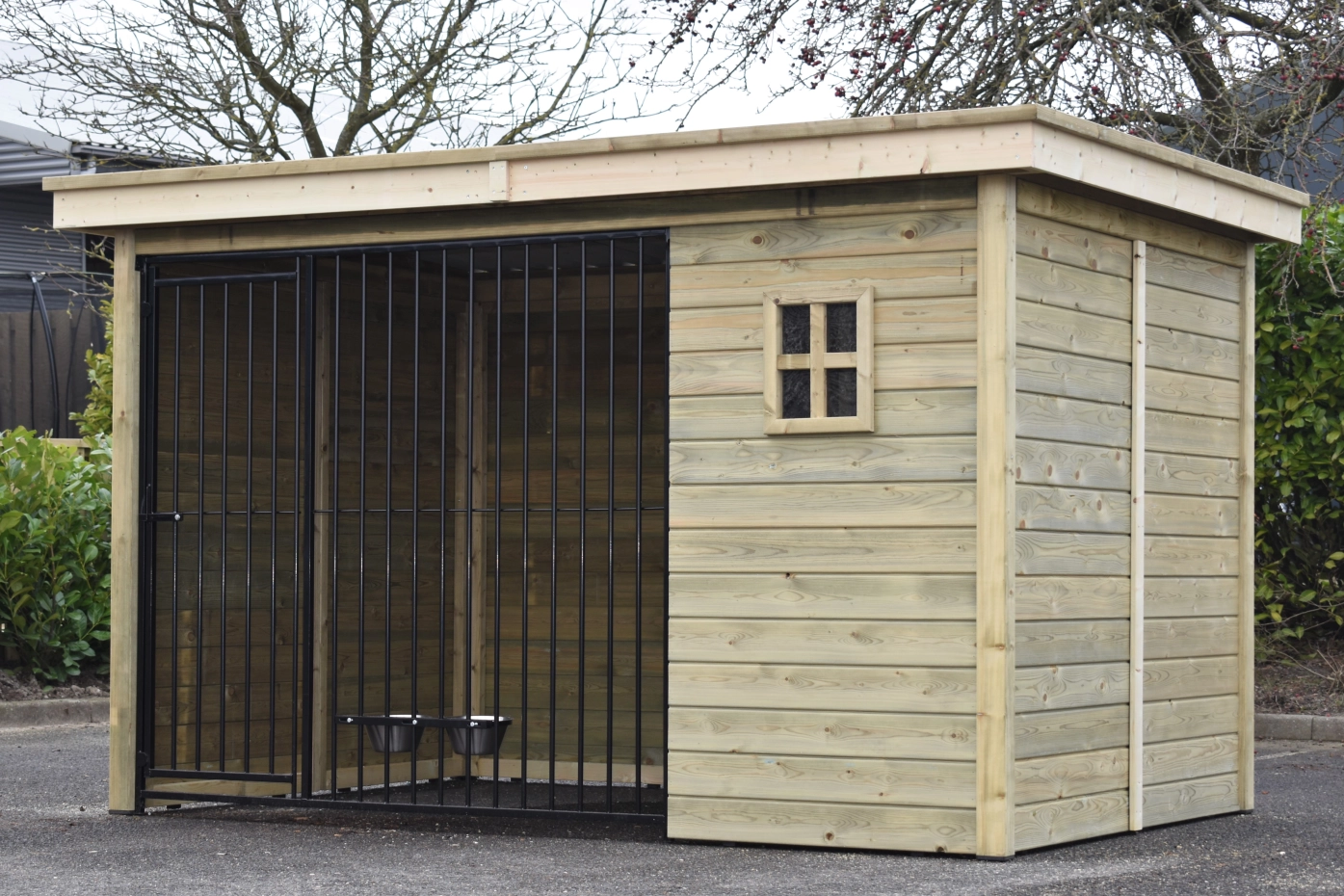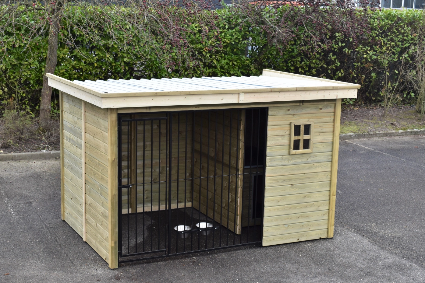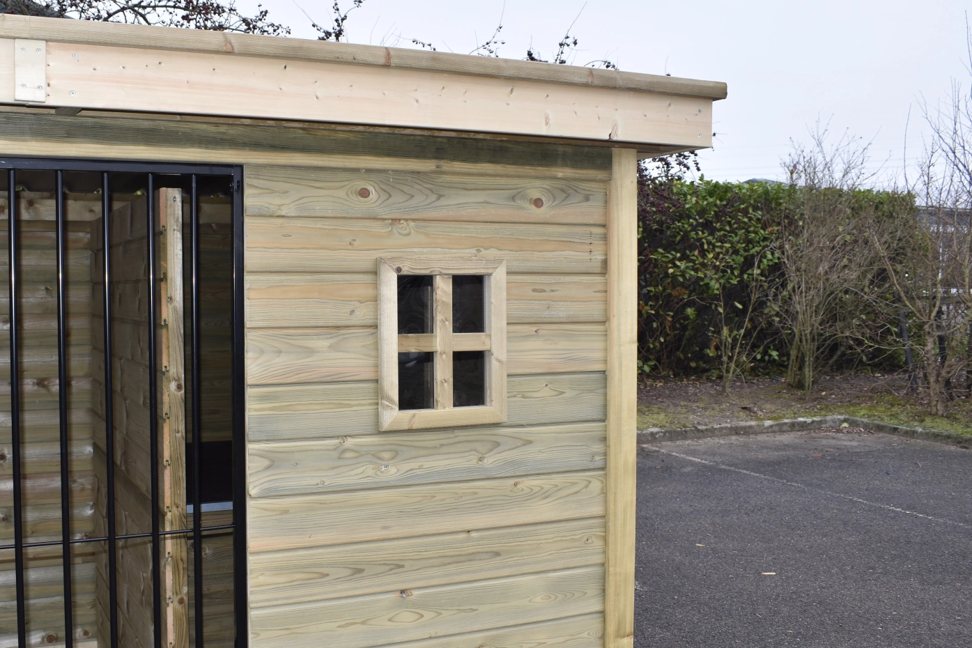 - The wooden walls provide protection against wind, rain and sun. This creates a better climate in the kennel, throughout the year.