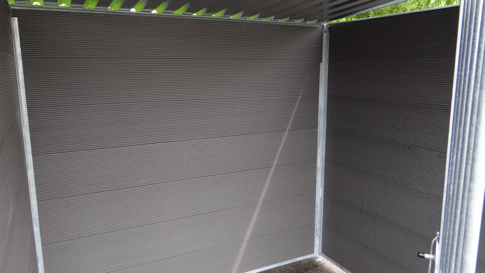 - Delivered as a galvanized steel frame with 7 WPC boards of 20x250mm (TxH)