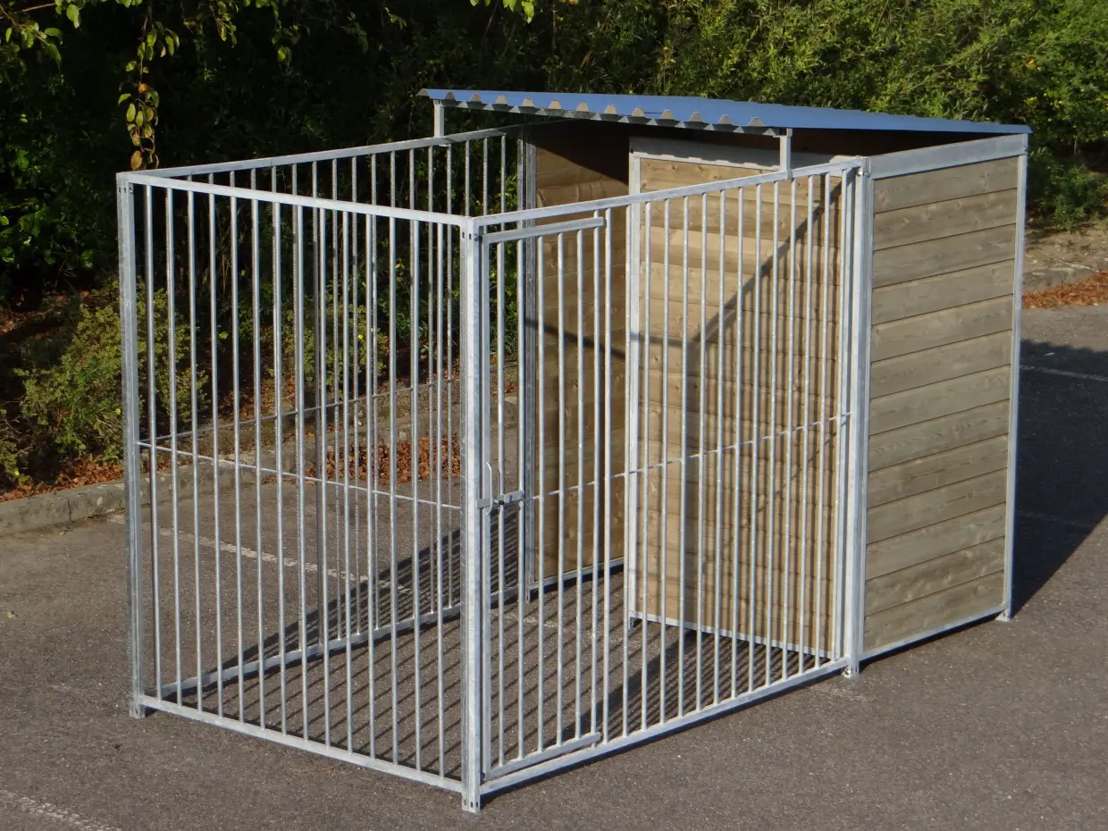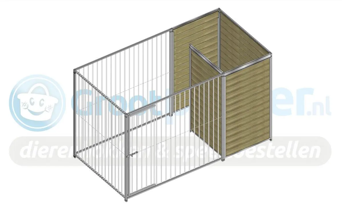 Great and strong dog kennel for your dog! The sizes of this dogkennel 3 x 1,5 m. This kennel has a half-roof to protect your dog against rain.