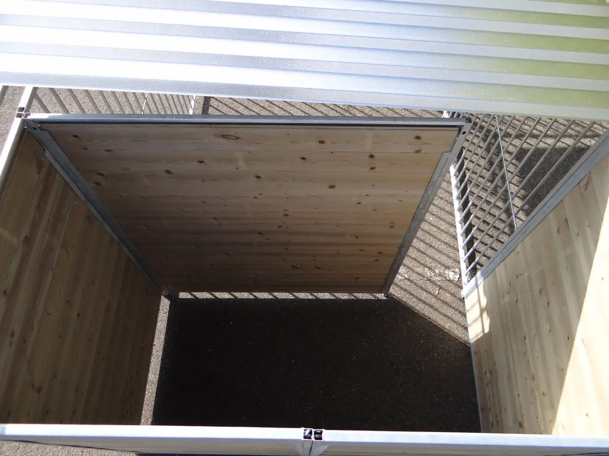 - The kennel door is standard on the left side, opens inwards and has the option of a padlock