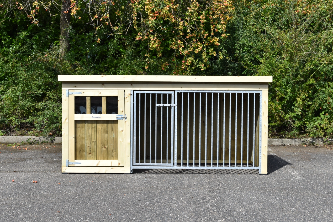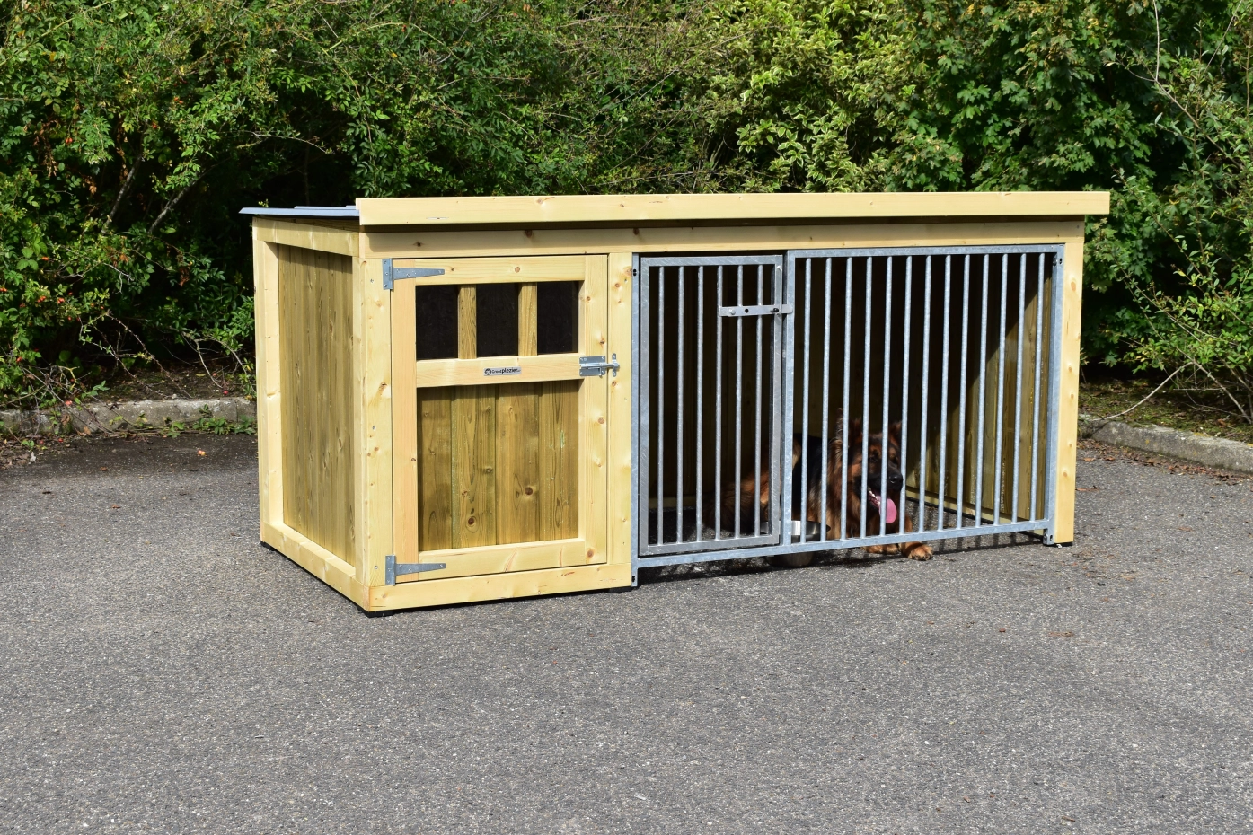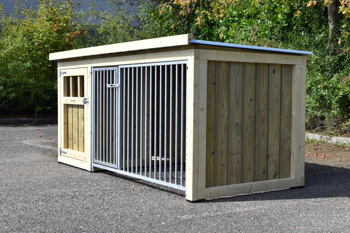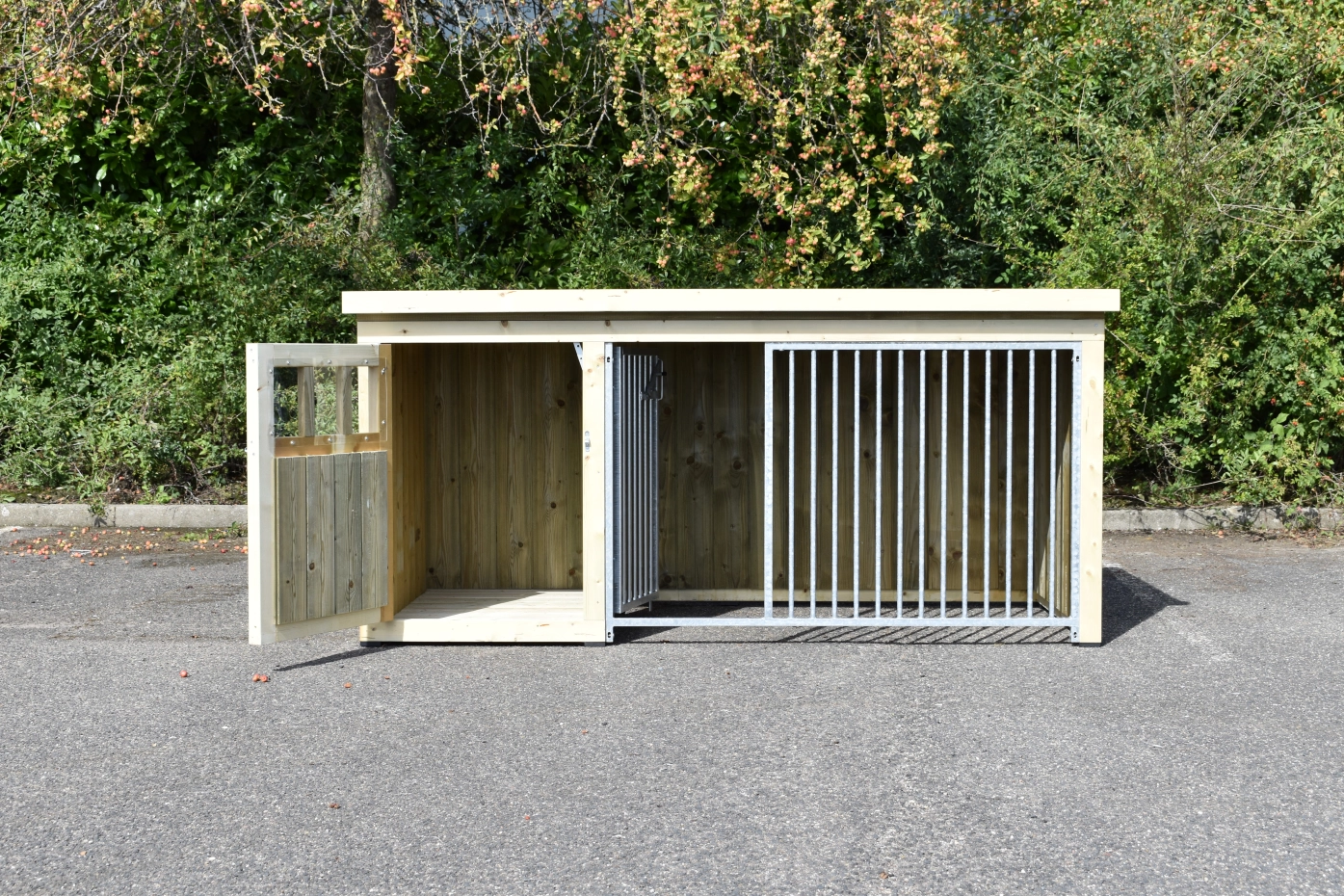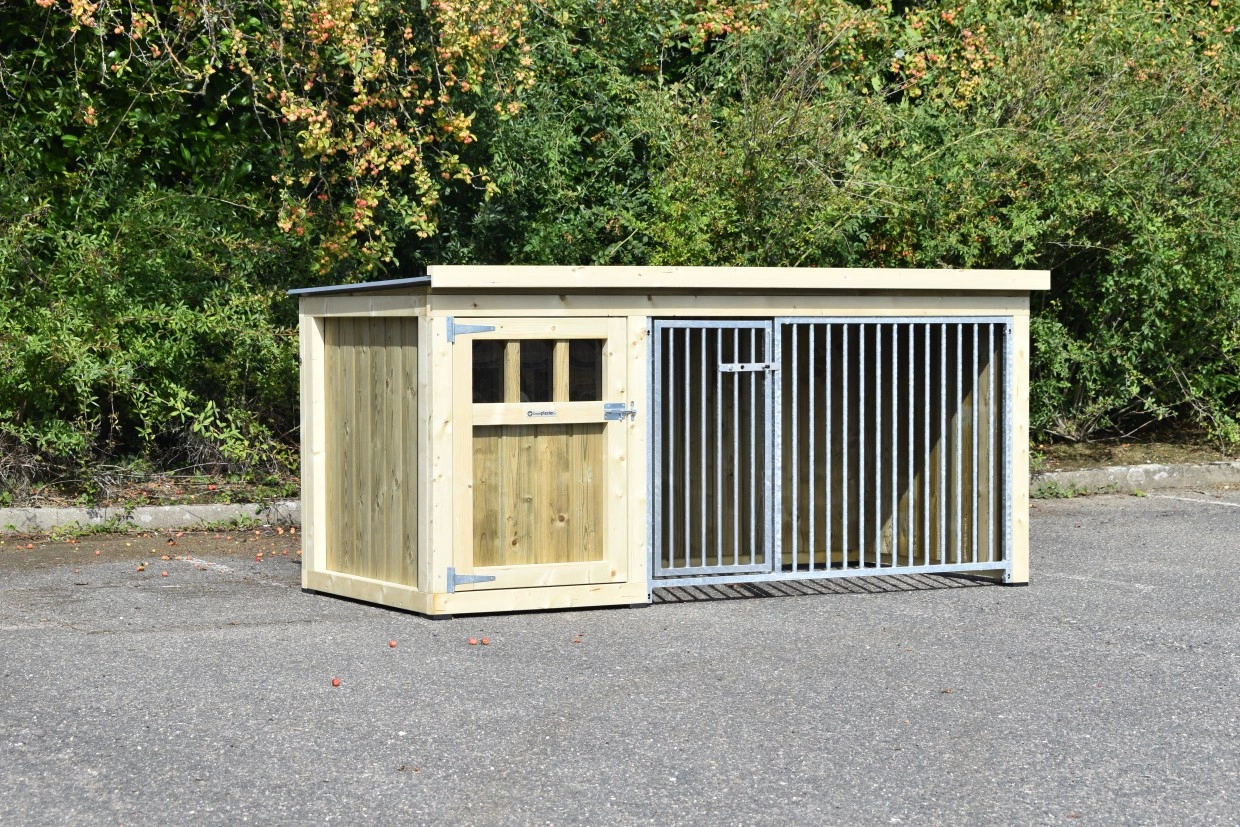 Dog kennel Isabelle 1 is suitable for medium till large dogs. The sleeping compartment has a closed wooden floor and has a large door. The Isabelle 1 is provided with a few closed wooden panels and 1 bar panel. It offers a nice place for your dog.