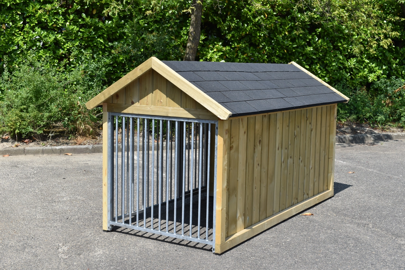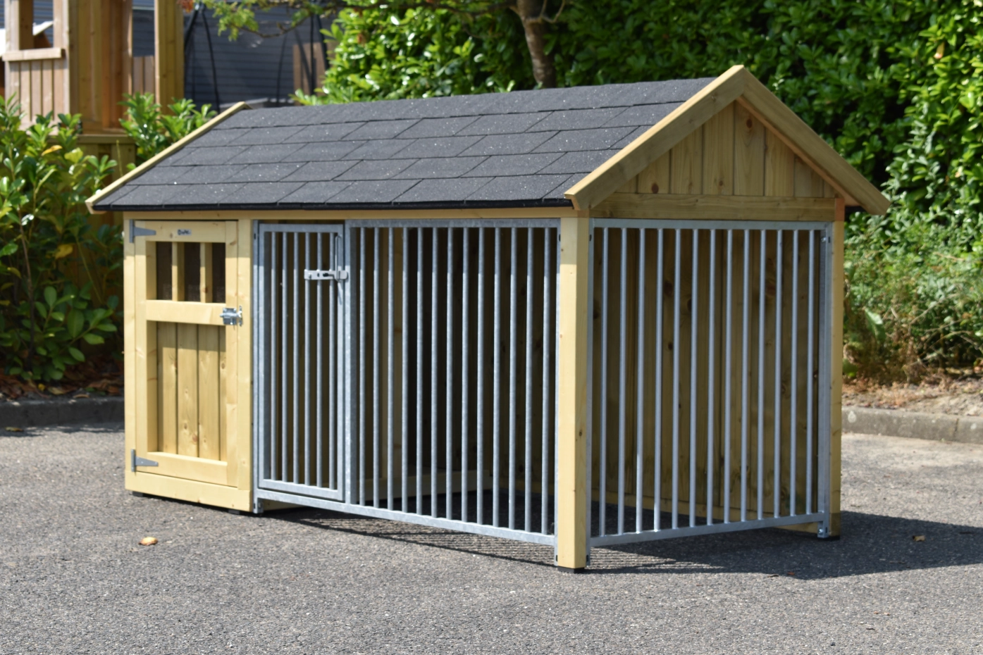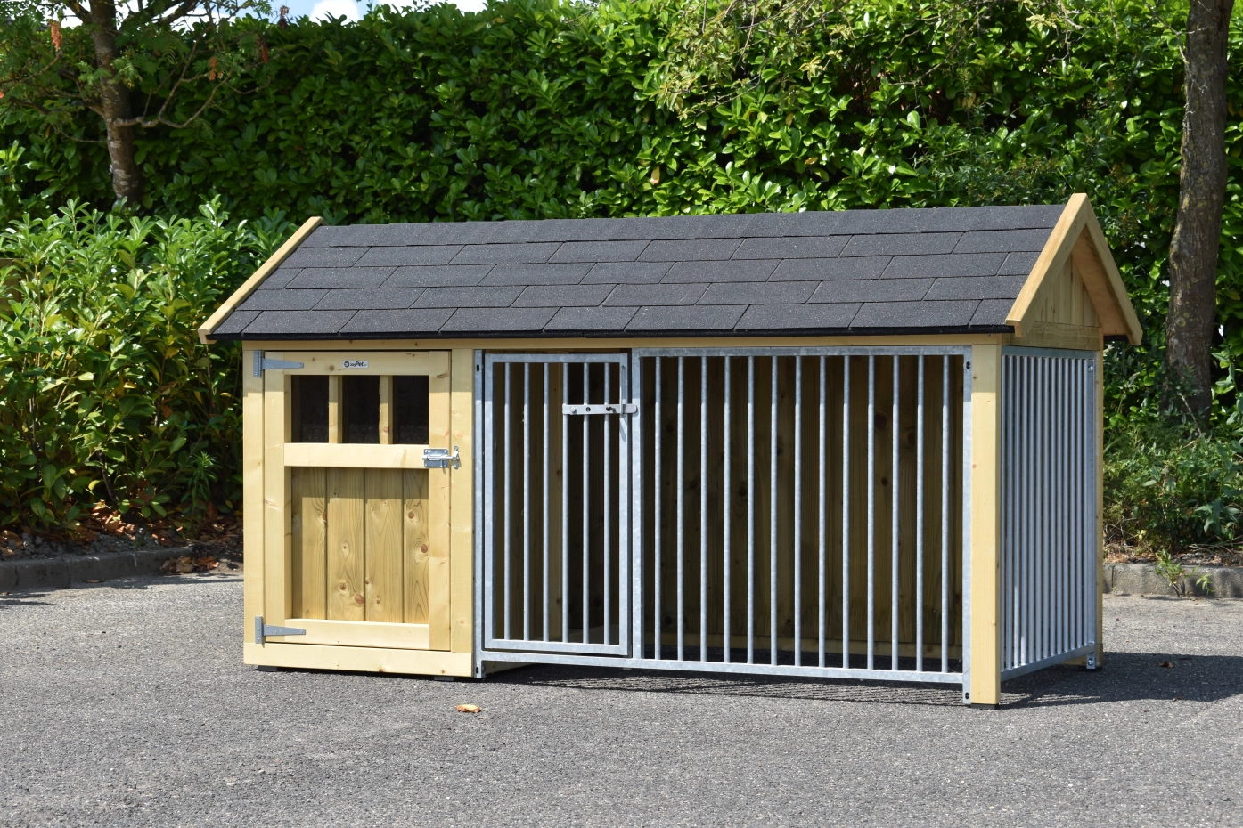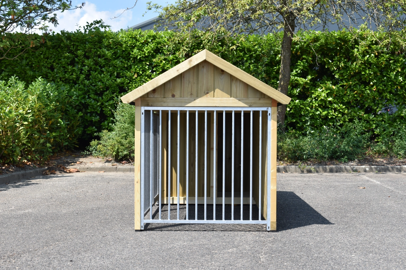 Dog kennel Isabelle 2 is suitable for medium till large dogs. The sleeping compartment has a closed wooden floor and has a large door. The Isabelle 2 is provided with a few closed wooden panels and 2 bar panels. It offers a nice place for your dog.