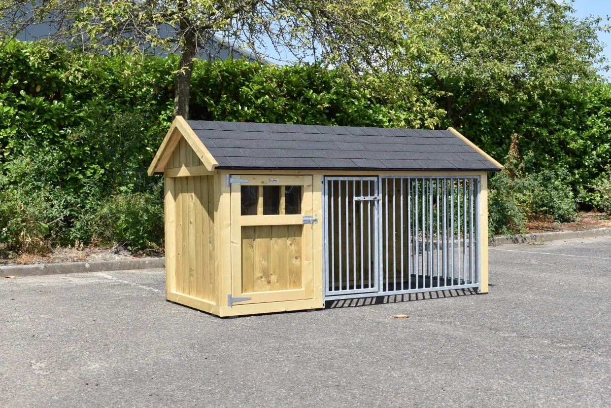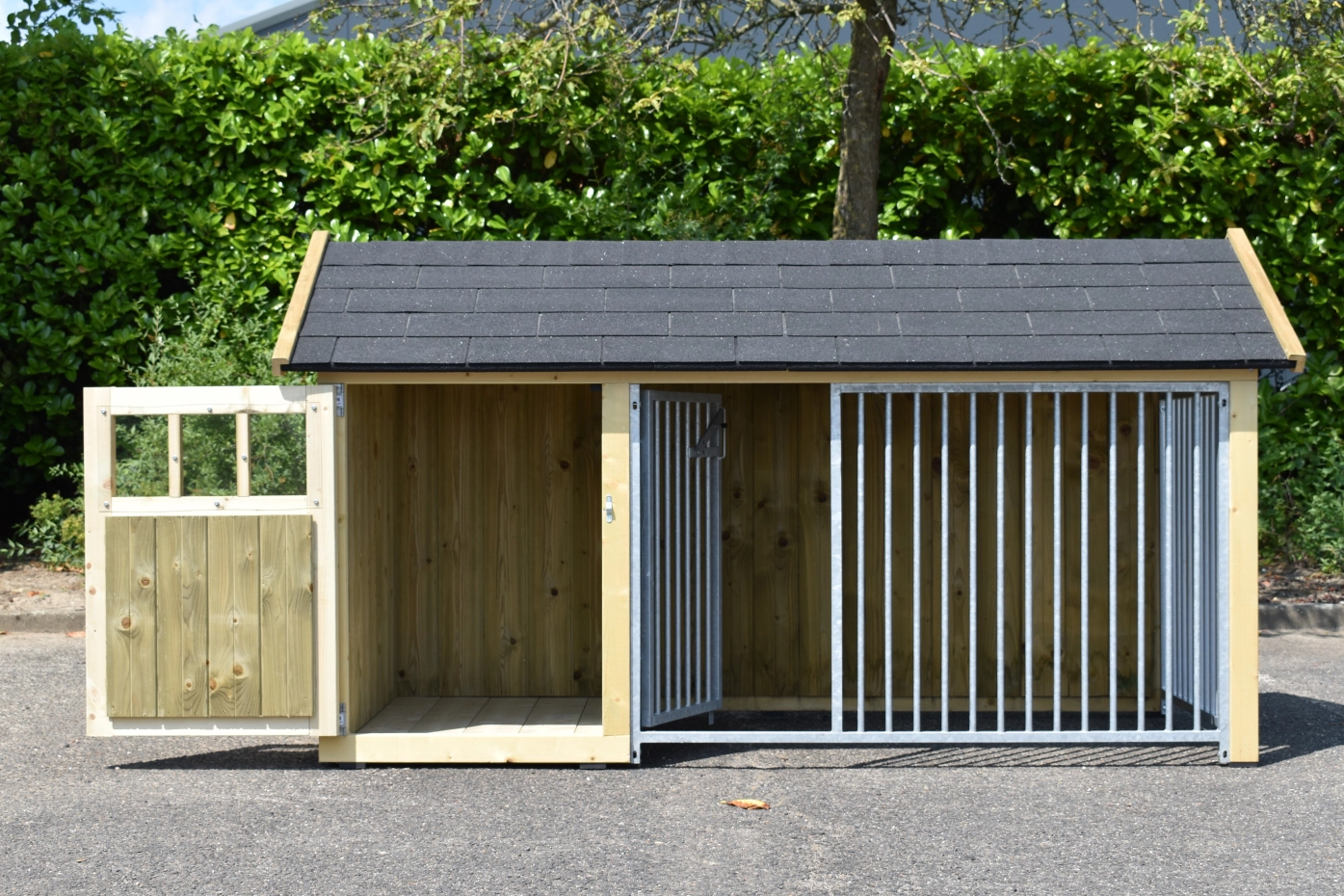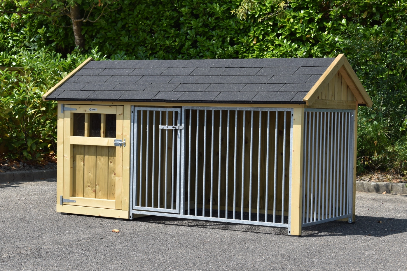 Dog kennel Isabelle 2 is suitable for medium till large dogs. The sleeping compartment has a closed wooden floor and has a large door. The Isabelle 2 is provided with a few closed wooden panels and 2 bar panels. It offers a nice place for your dog.