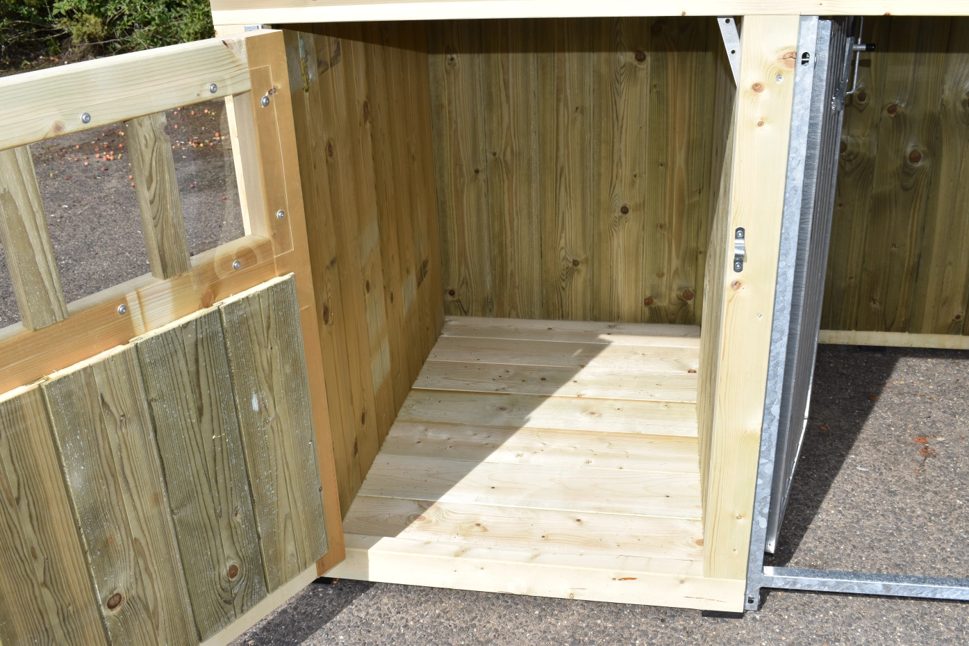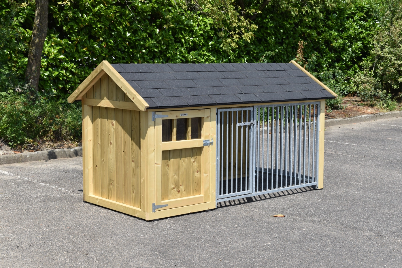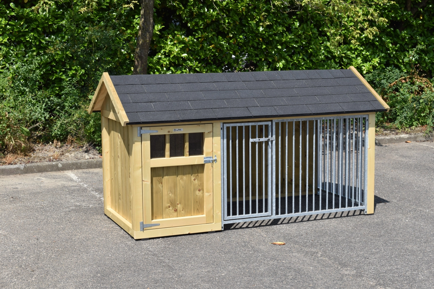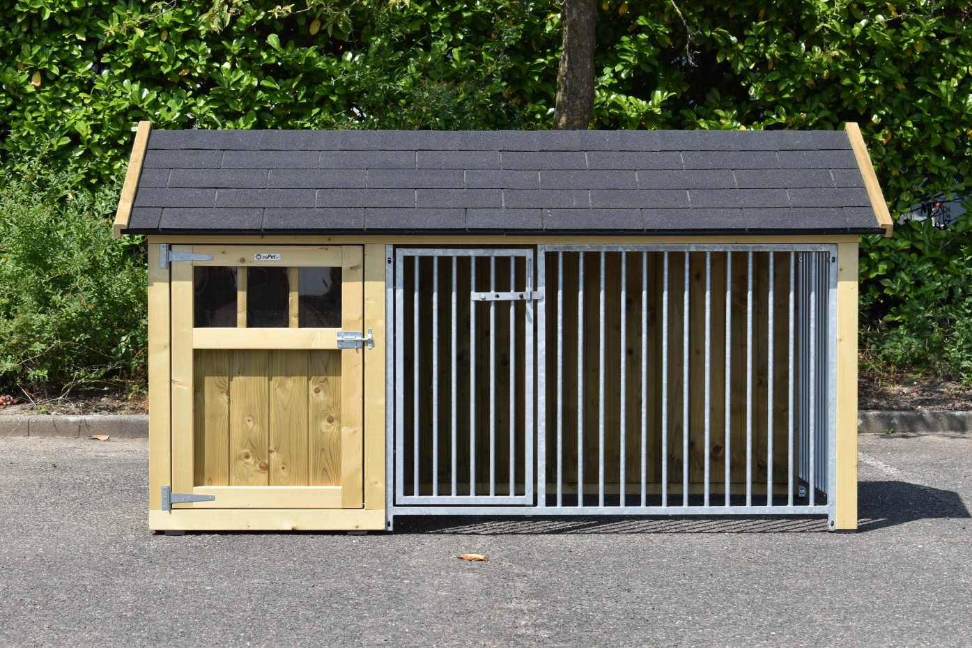 Dog kennel Isabelle 2 is suitable for medium till large dogs. The sleeping compartment has a closed wooden floor and has a large door. The Isabelle 2 is provided with a few closed wooden panels and 2 bar panels. It offers a nice place for your dog.