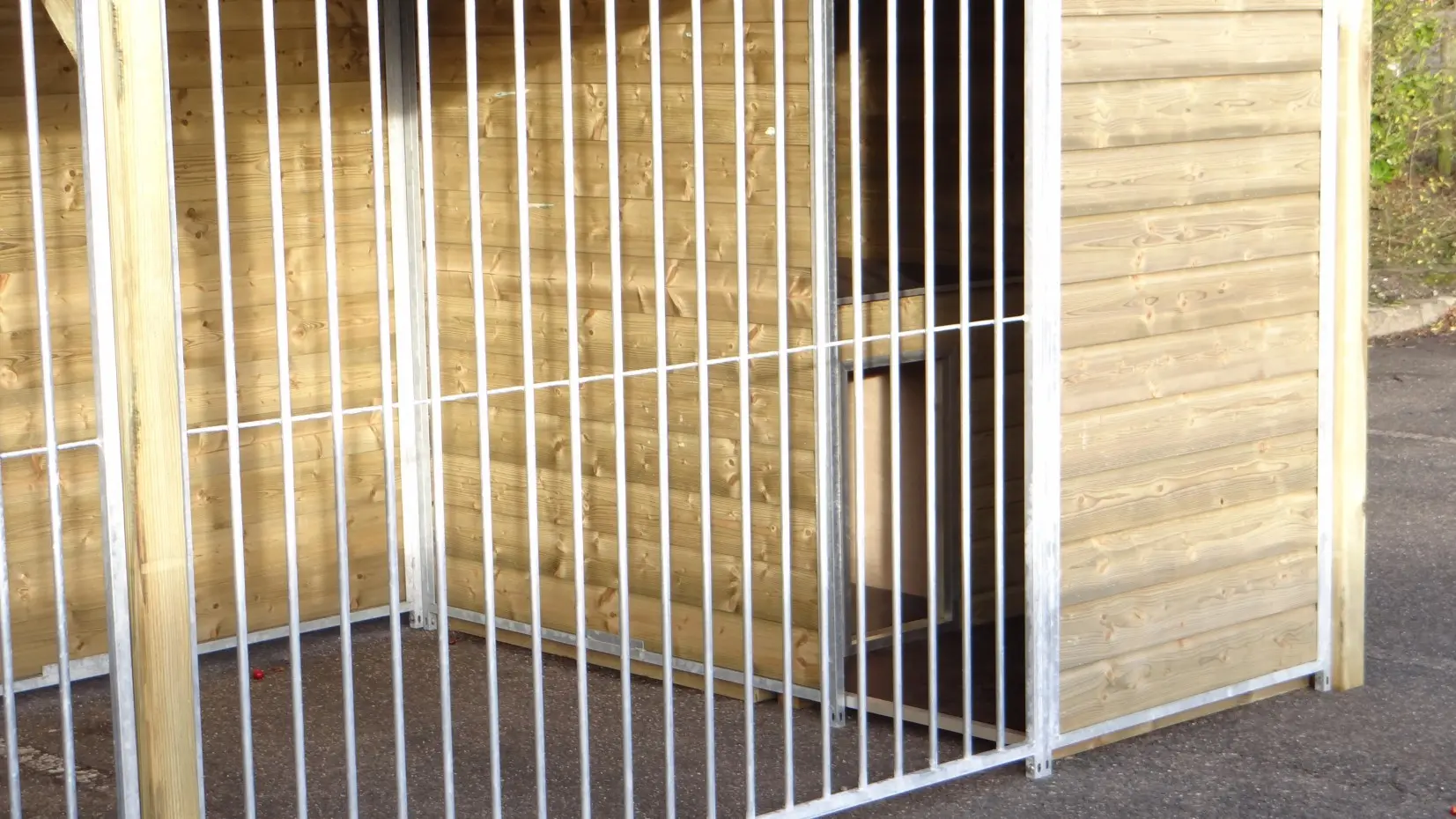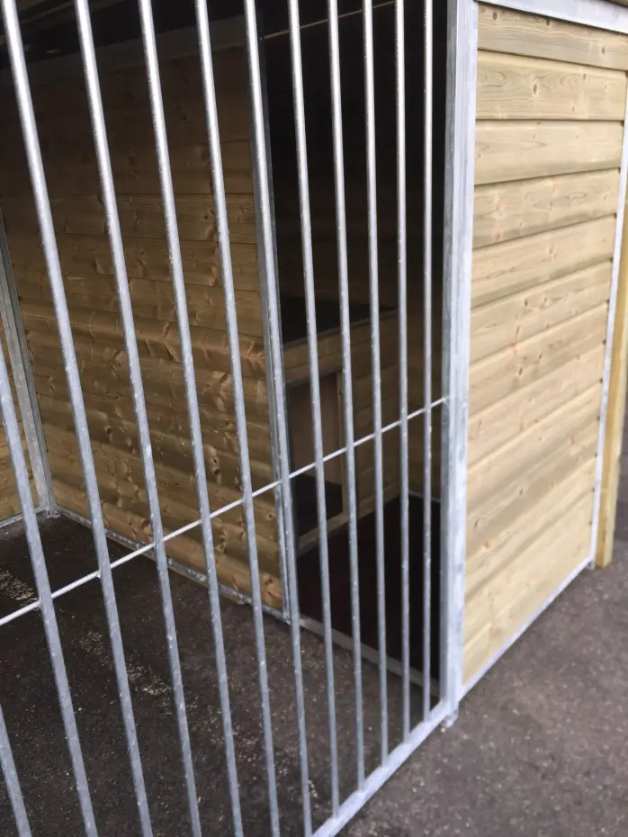 - The kennel door is standard on the left side, opens inwards and has the option of a padlock