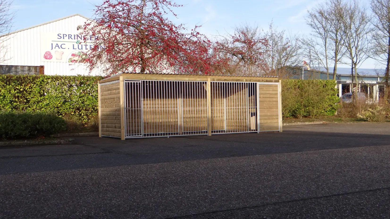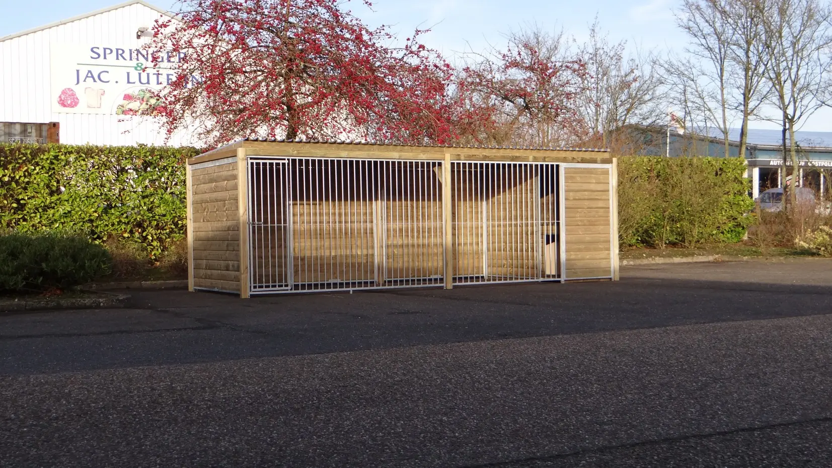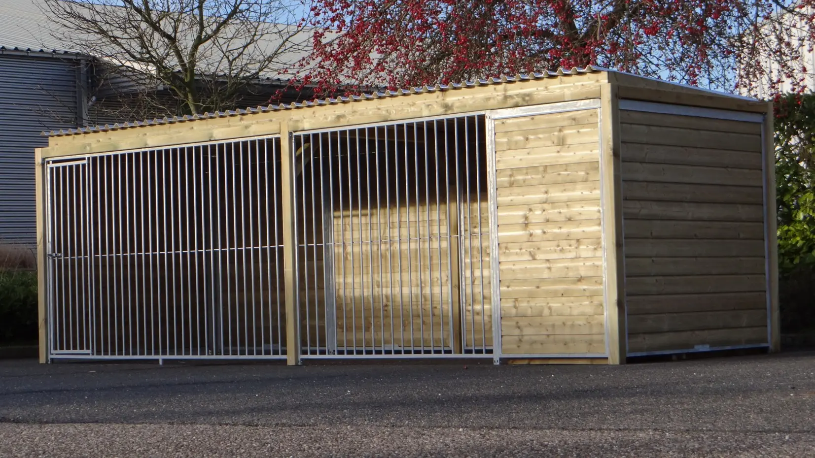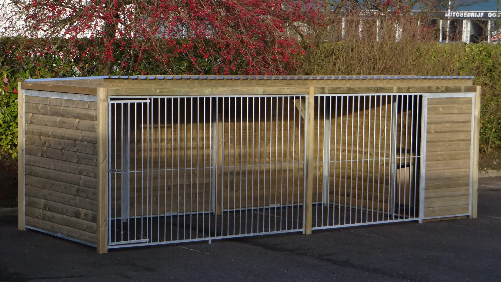 - * The kennel is equipped with a luxurious roof system with overhang at the front and at the sides.