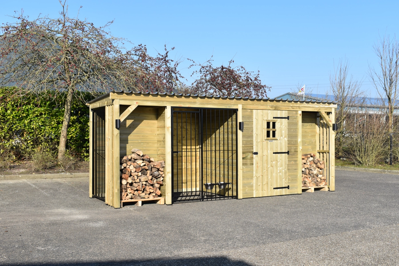 - The wooden walls provide protection against wind, rain and sun. This creates a better climate in the kennel, throughout the year.