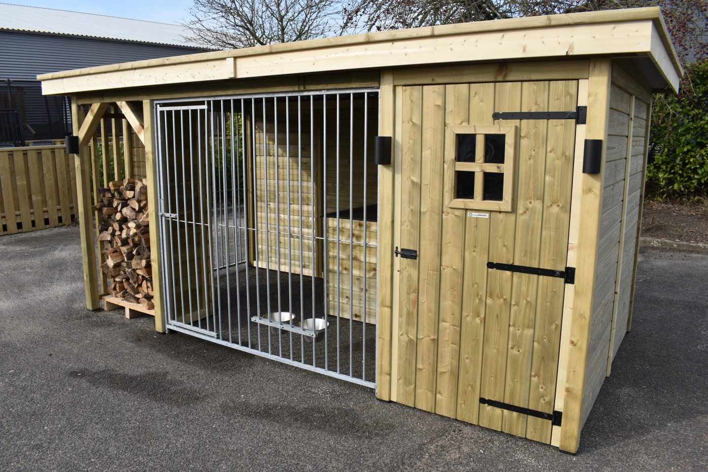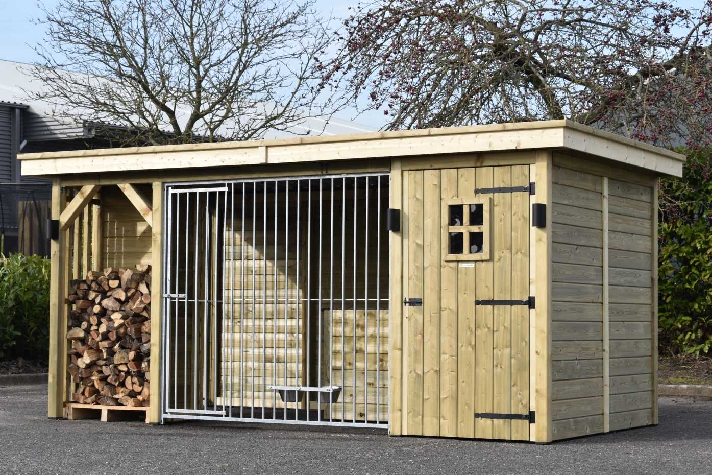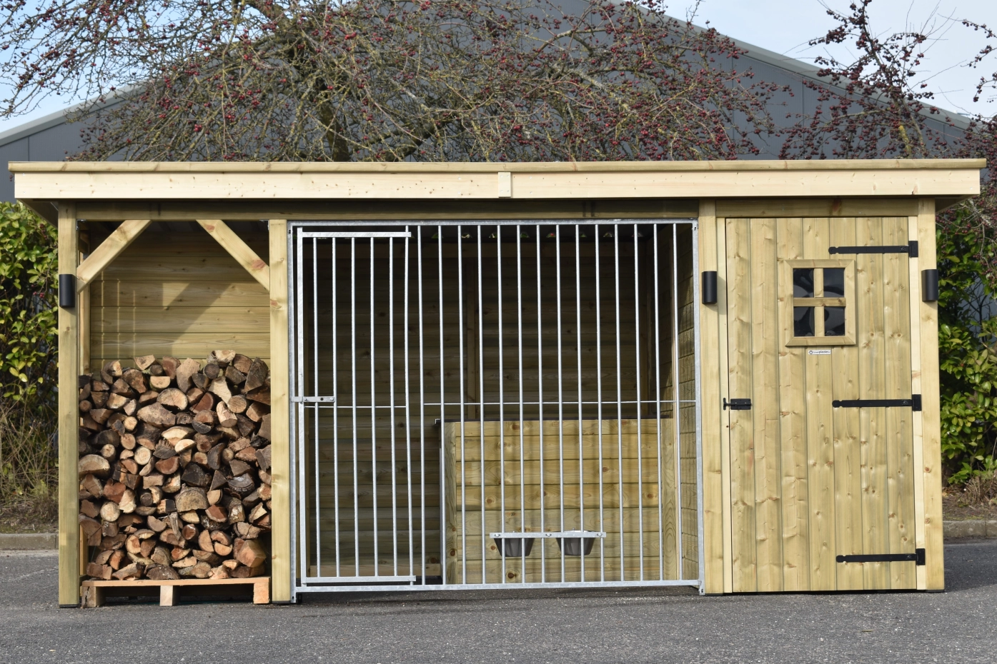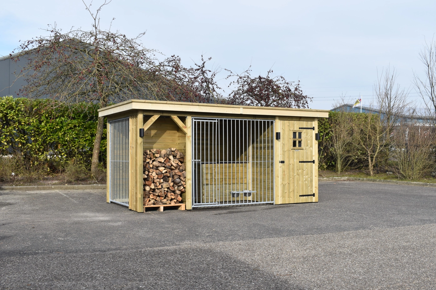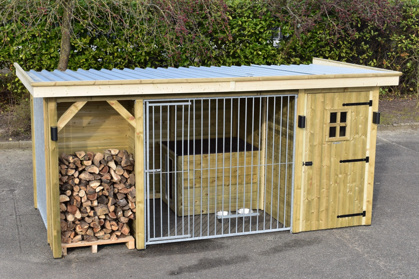 Dog kennel Modul COMBI with storage room and fire wood compartment