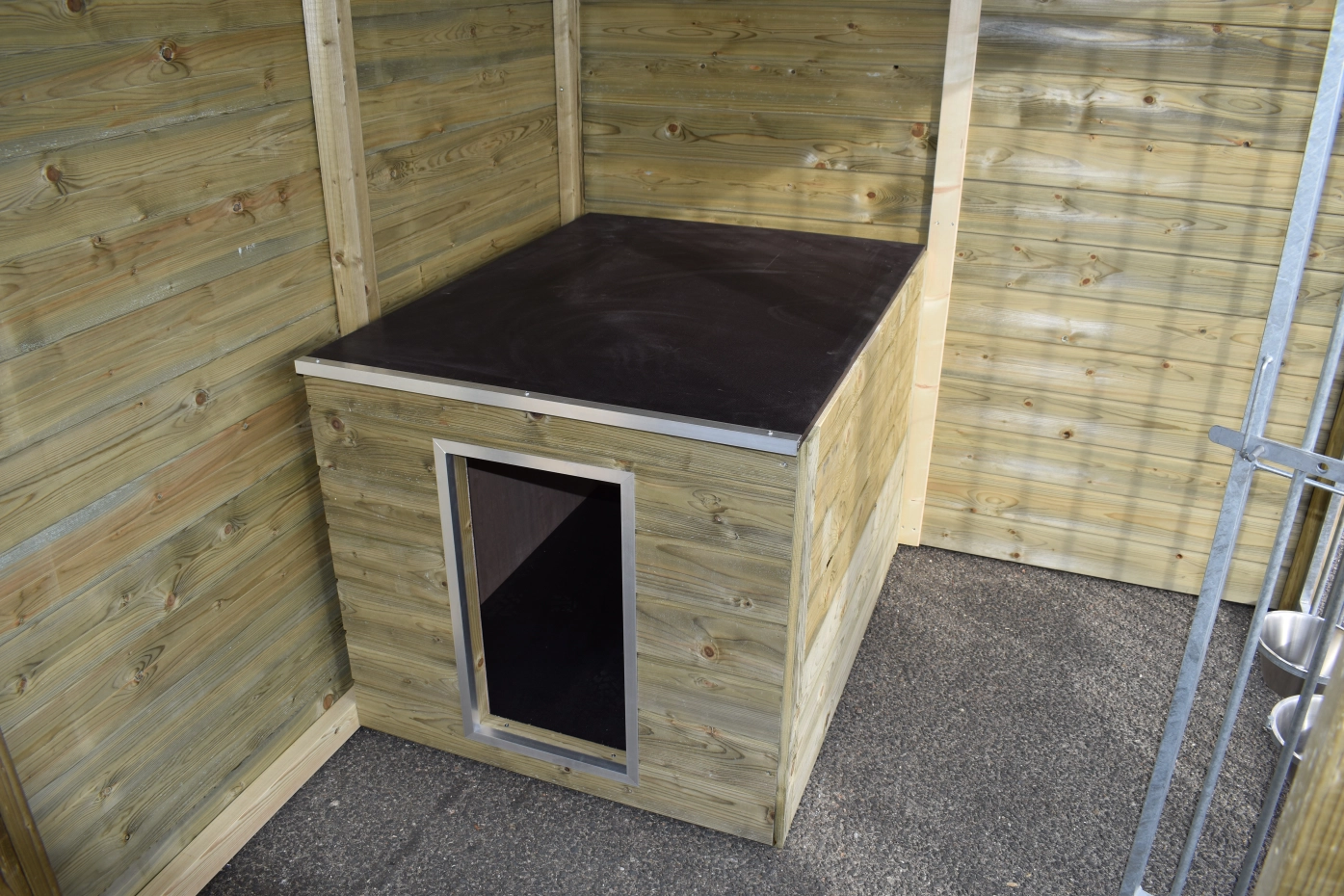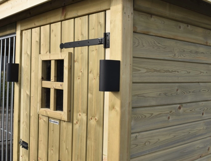 - The wooden walls provide protection against wind, rain and sun. This creates a better climate in the kennel, throughout the year.