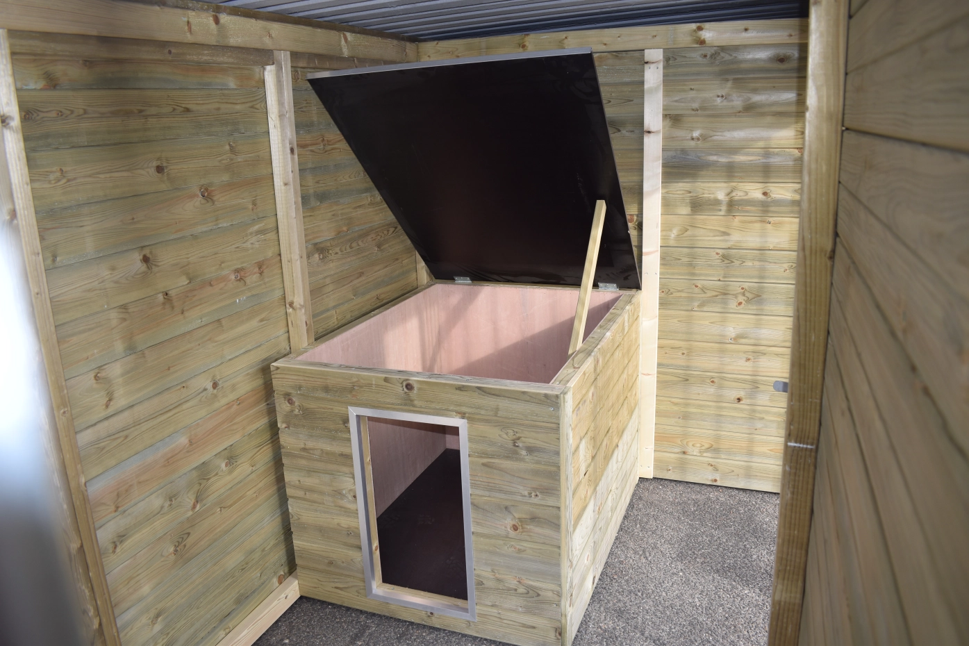 - The kennel door is standard on the left side, opens inwards and has the option of a padlock