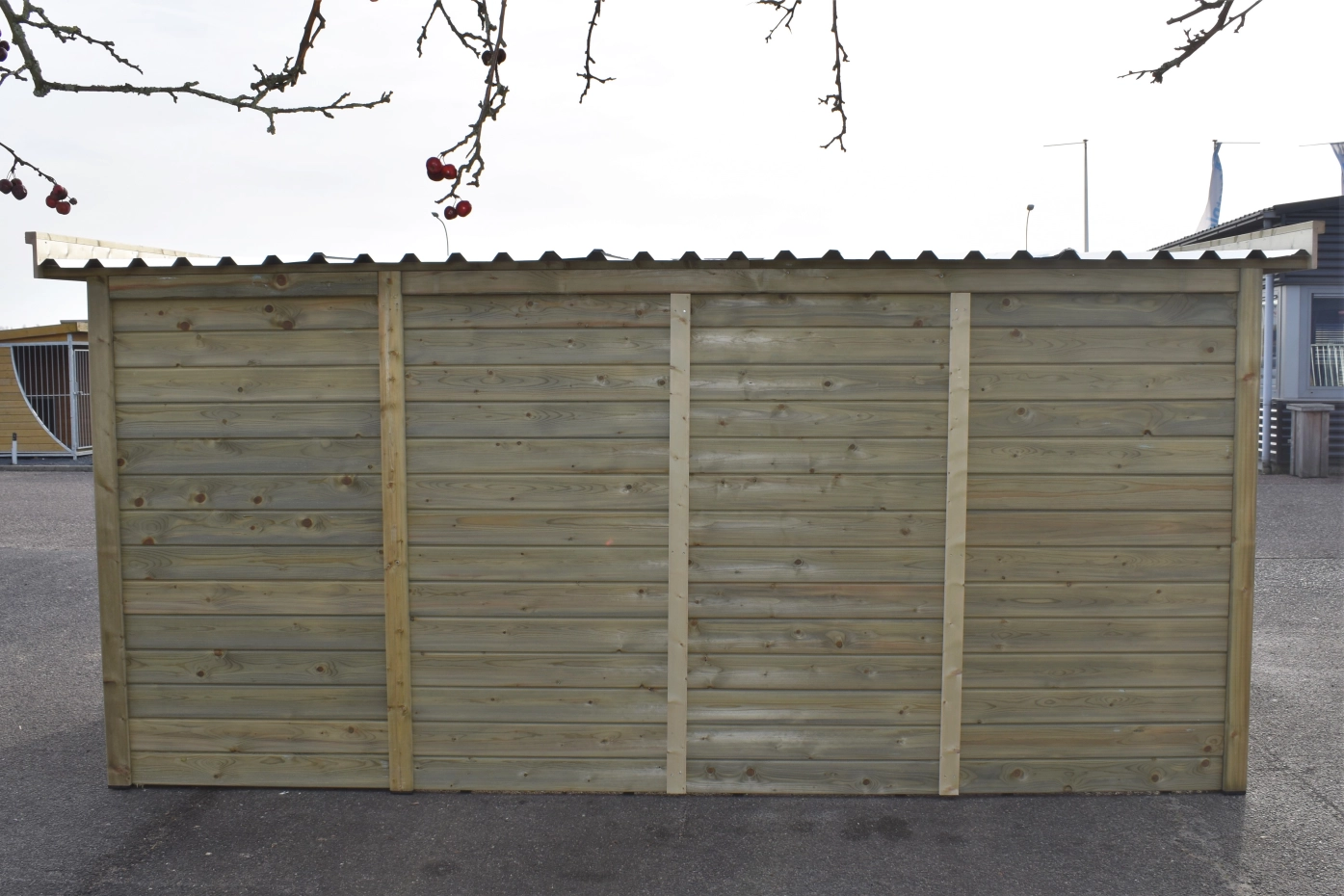 The kennel is made of impregnated spruce wood and has a long lifespan. The door is fitted with a decorative cross window, allowing daylight to enter the storage room. The storage room measures 1 x 2 metres.