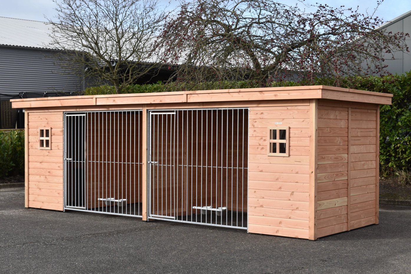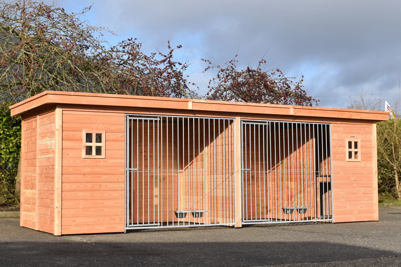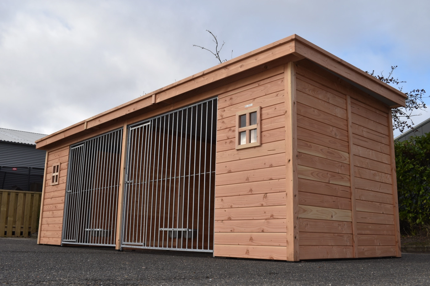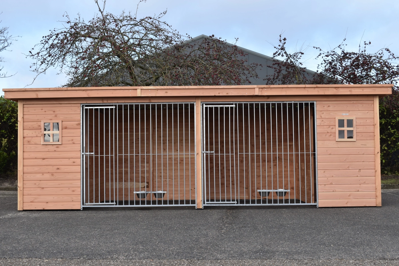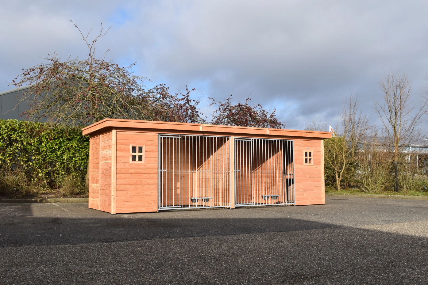 - The wooden walls provide protection against wind, rain and sun. This creates a better climate in the kennel, throughout the year.