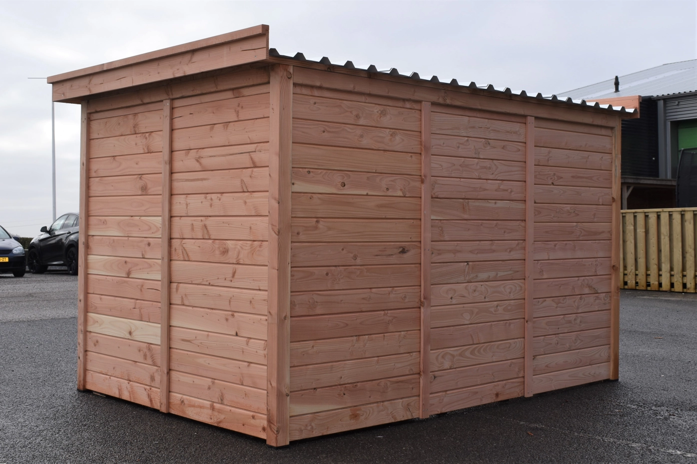 - This kennel panel with wood is fitted with 18 mm Douglas shiplap. The wood has durability class C and does not need to be treated. Without treatment, it will quickly turn grey. You can prevent this by treating it with Douglas oil.