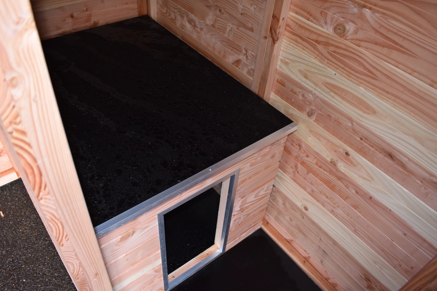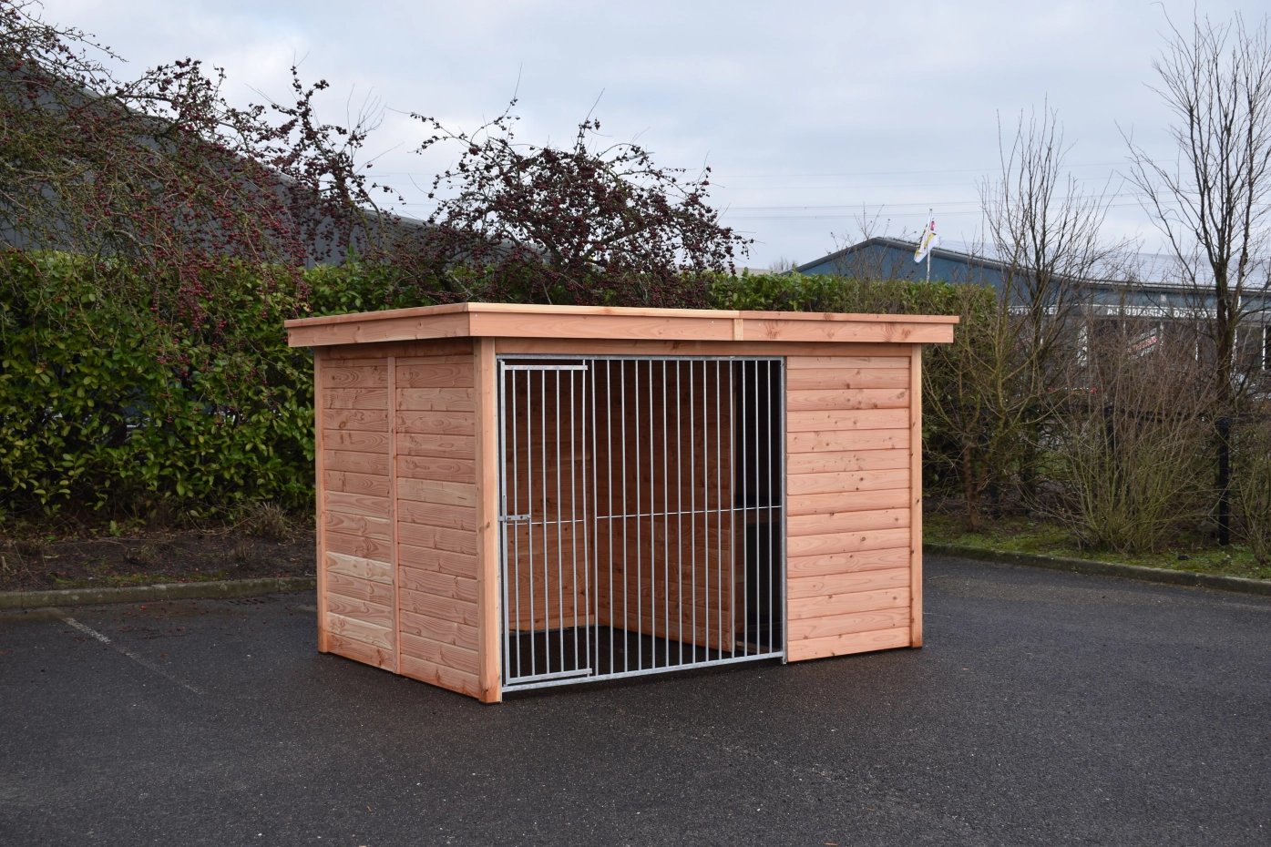 - The kennel door is standard on the left side, opens inwards and has the option of a padlock