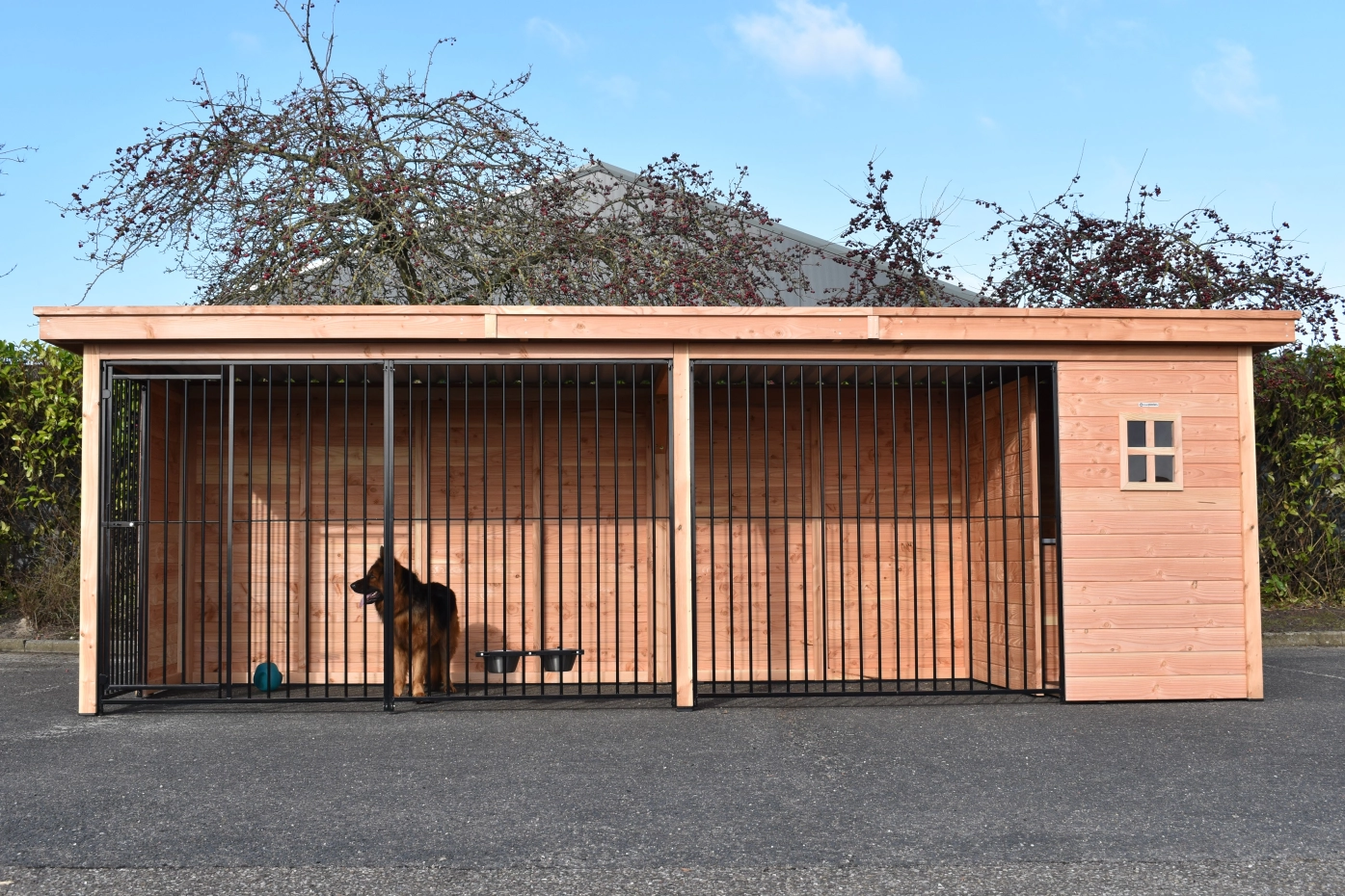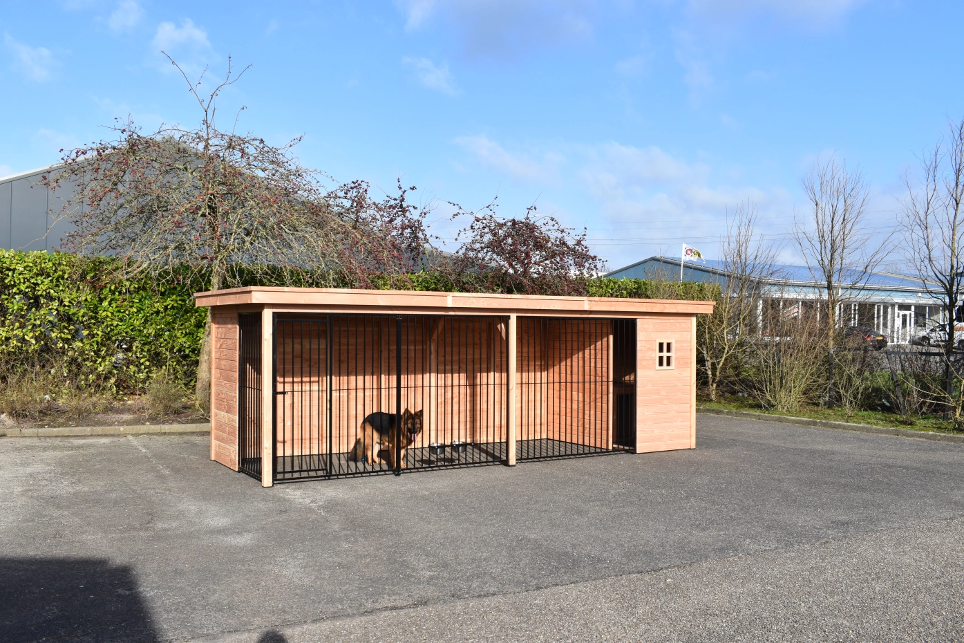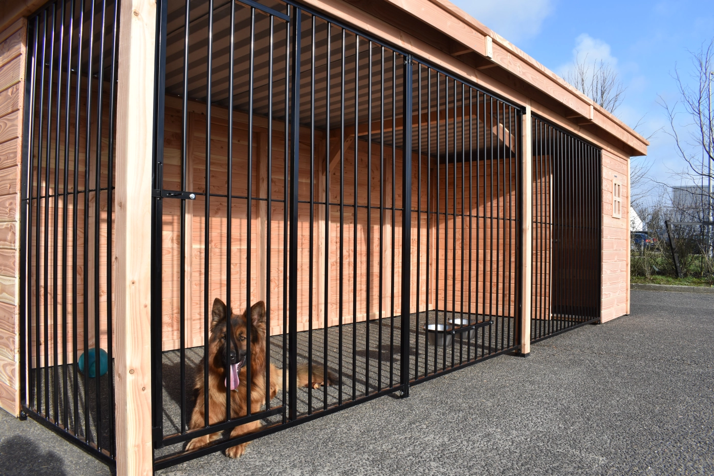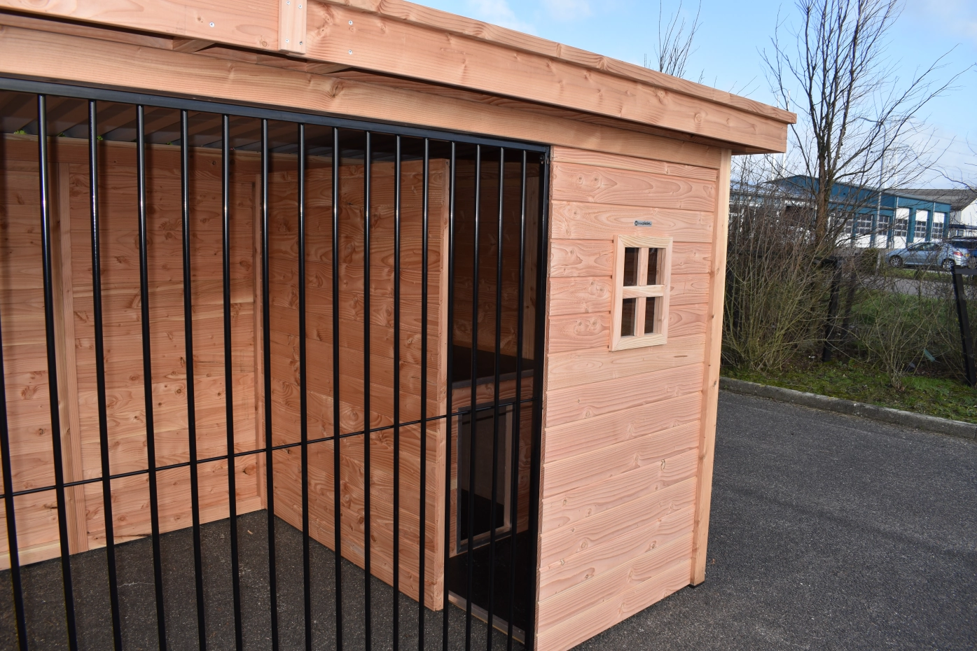 - The wooden walls provide protection against wind, rain and sun. This creates a better climate in the kennel, throughout the year.