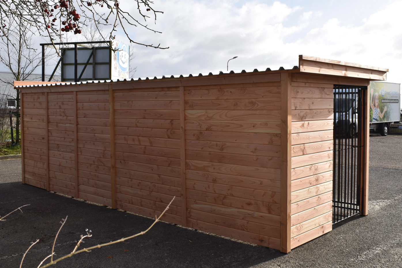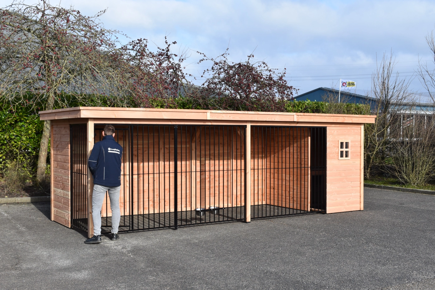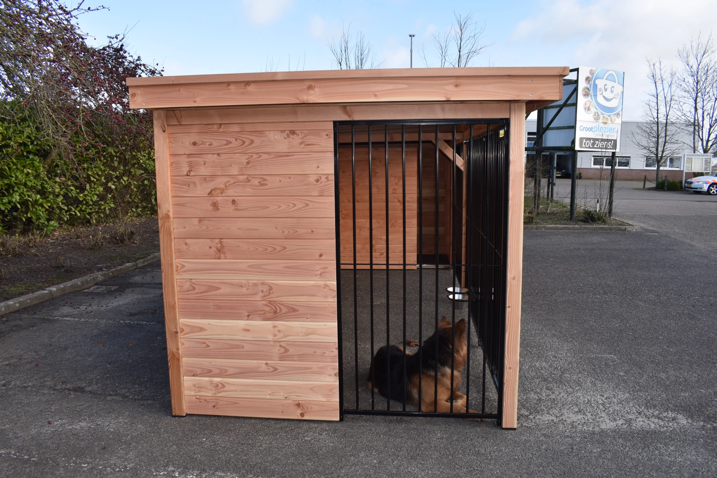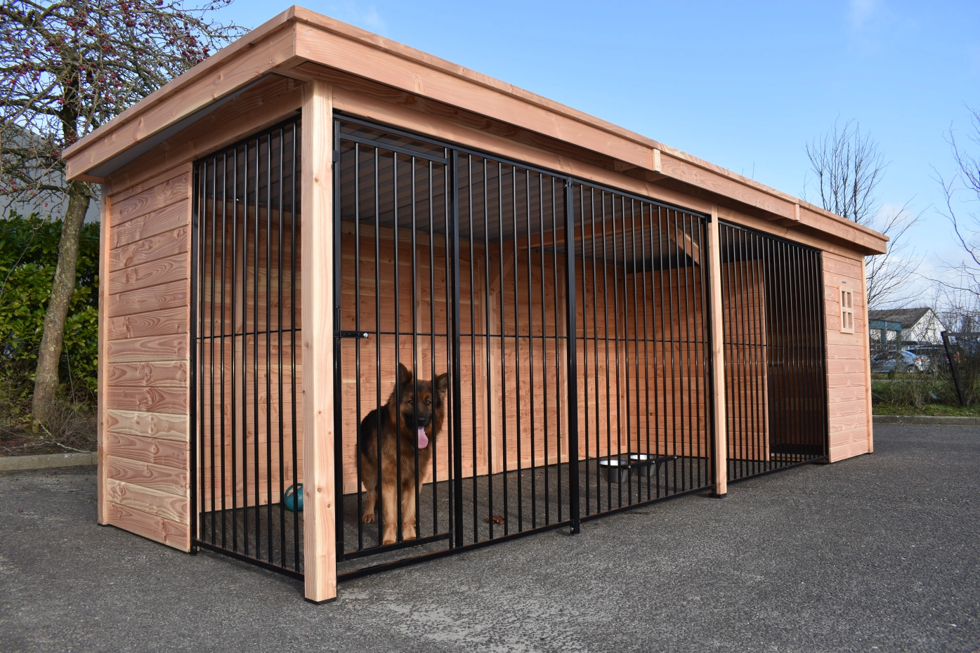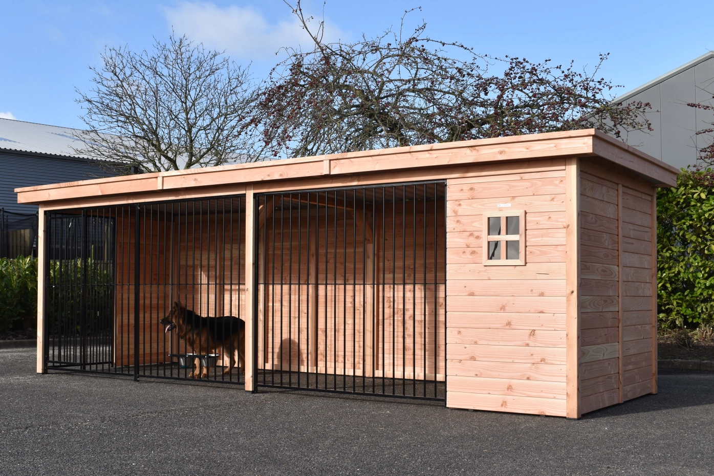 - The wooden walls provide protection against wind, rain and sun. This creates a better climate in the kennel, throughout the year.