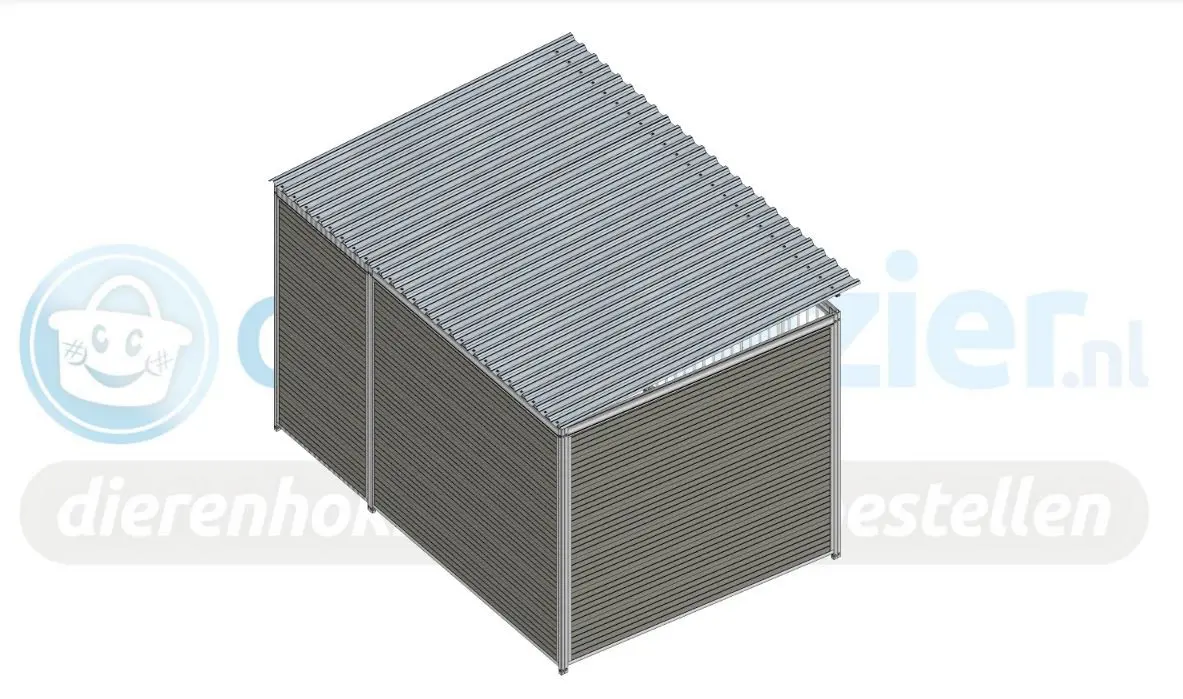 Dog kennel Forz 3x2 meters is a very chic dog shelter. Thermally galvanized steel panels with WPC boards create an extremely sturdy shelter for both large and small dogs. The waterproof steel roof slopes to the back. Anchoring material is also included.