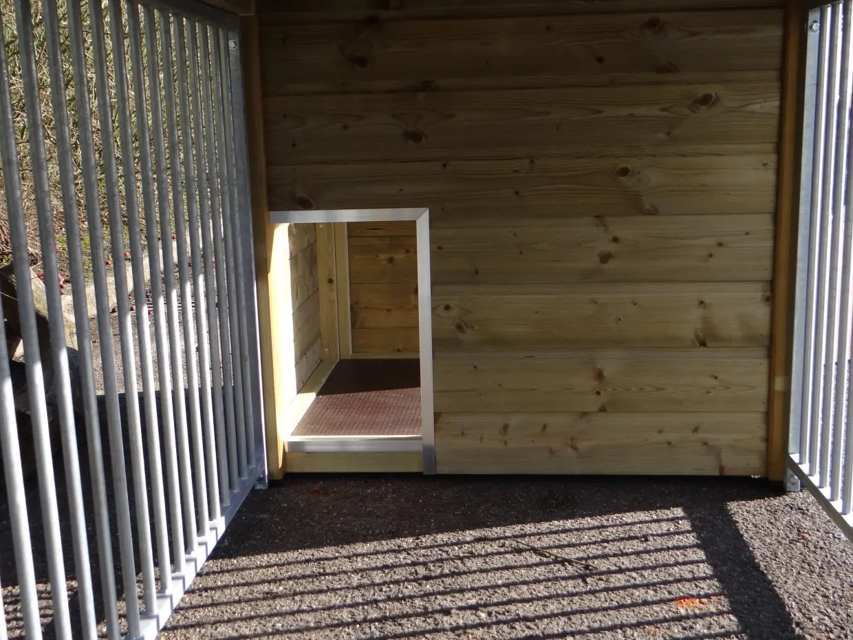 - This version 3 is equipped with 3 kennelpannels: 1 in the front, 1 at the left side, 1 at the back side of the run.