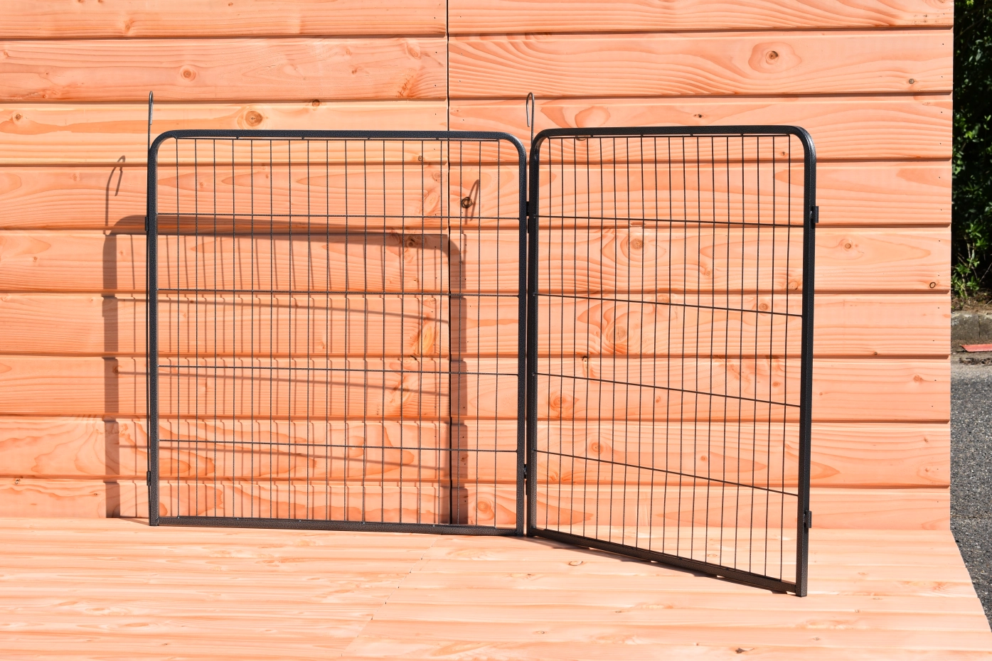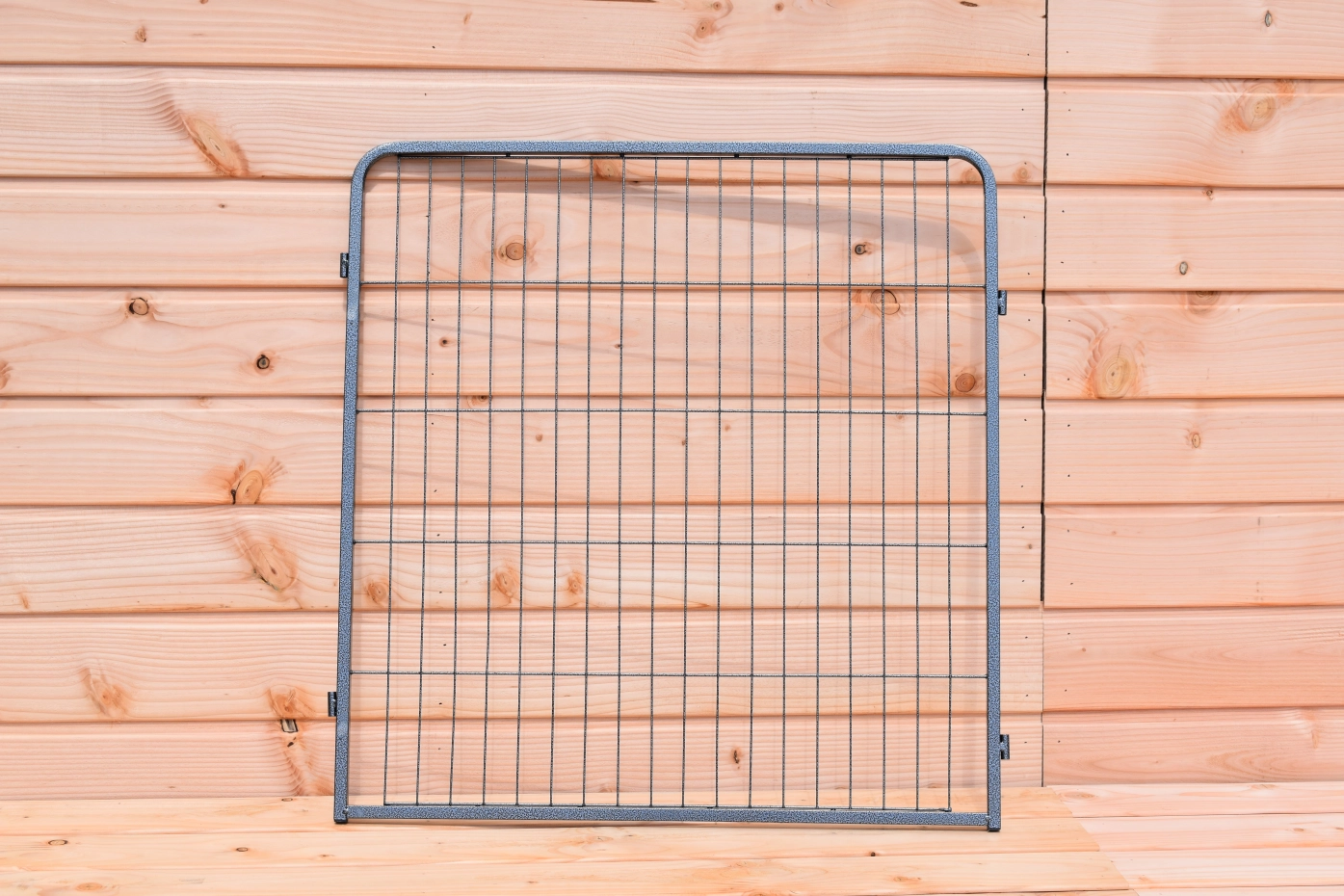 - The panels are connected with each other with long pins. With the pins you can secure the ren in the ground.