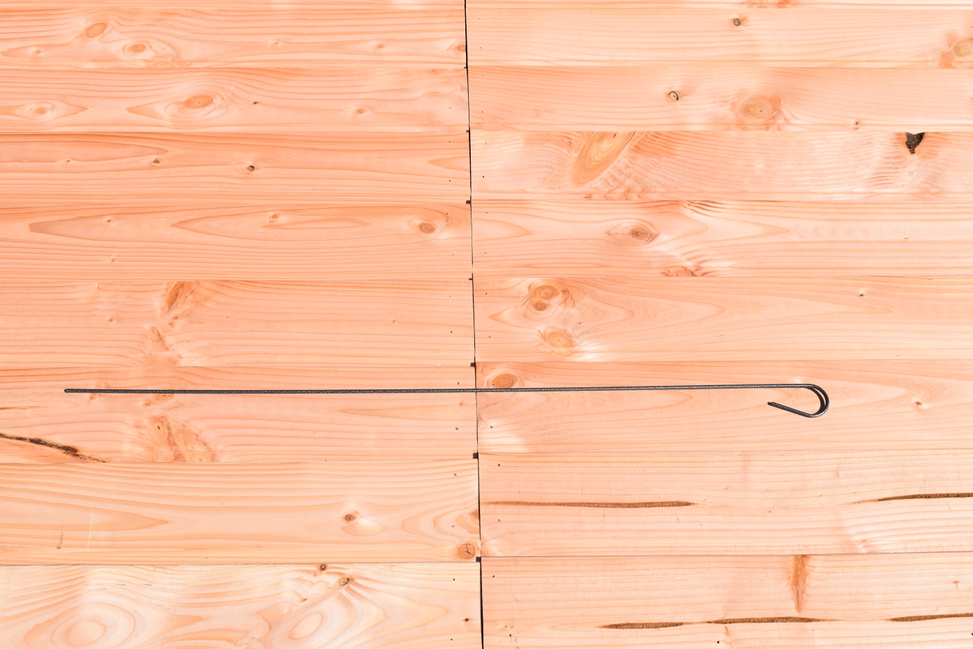 - The panels are connected with each other with long pins. With the pins you can secure the ren in the ground.
