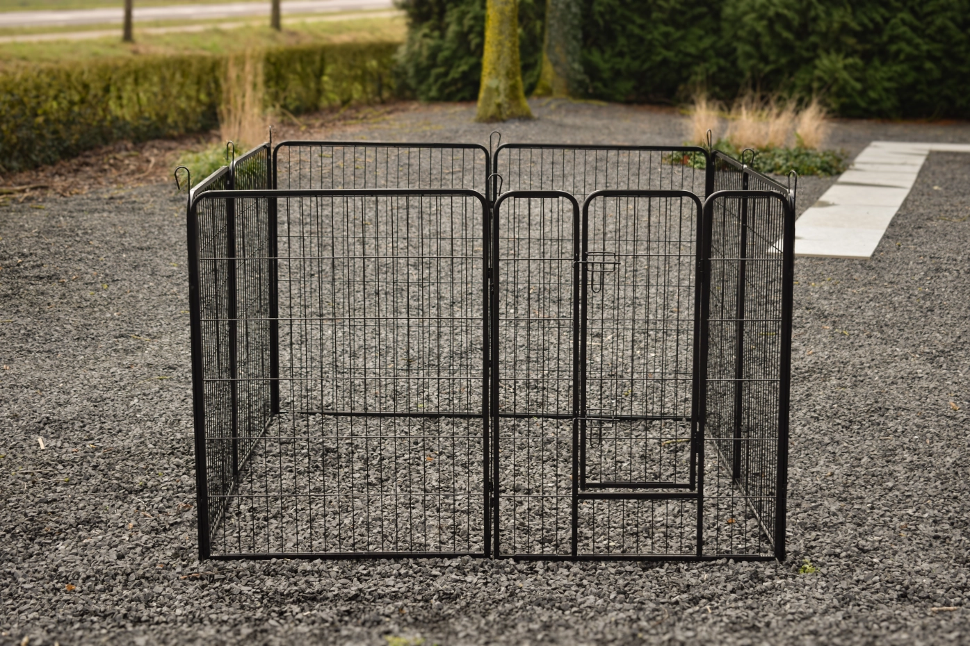 The puppy enclosure Octa is made of powdercoated steel. Puppy enclosure Octa exist of 8 panels, each of them has the dimensions 79x100cm.