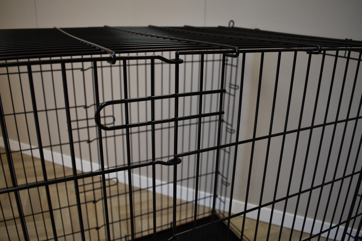 - Very solid dog cage with sturdy, thick, black powder-coated bars