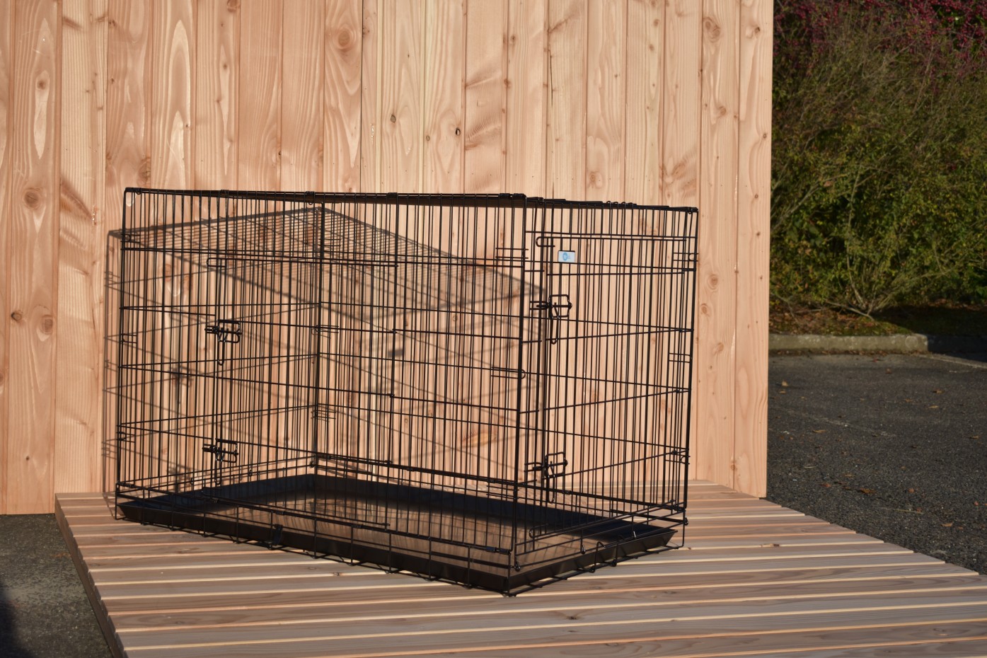 - Very solid dog cage with sturdy, thick, black powder-coated bars