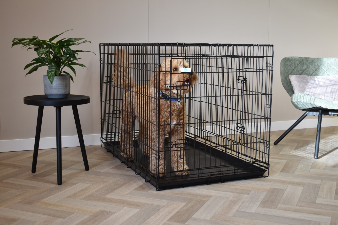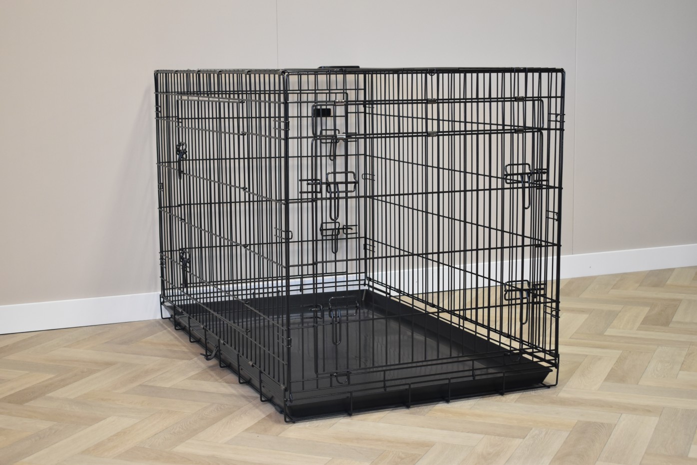 - Very solid dog cage with sturdy, thick, black powder-coated bars